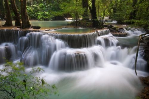 น้ำตกห้วยแม่ขมิ้น ตั้งอยู่บนเขตพื้นที่ อุทยานแห่งชาติเขื่อนศรีนครินทร์ ตำบลแม่กระบุง อำเภอศรีสวัสดิ์ จังหวัดกาญจนบุรี ซึ่งน้ำตกห้วยแม่ขมิ้นจะมีทั้งหมด 7 ชั้น และยังเป็นเส้นทางในการศึกษาธรรมที่มีความสมบูรณ์ของป่าไม้อีกนะครับ มีน้ำตกไหลเย็นตลอดทั้งปี ยิ่งในช่วงฤดูหนาวจะมีนักท่องเที่ยวเข้ามากางเต้นท์กันเยอะ ในบริเวณลานกว้าง ที่ทางอุทยานจัดเอาไว้ให้ ซึ่งสำหรับนักท่องเที่ยวที่ต้องการกางเต้นท์จะมีค่าบริการอยู่ที่ 30 บาท ต่อคน/ต่อคืน เท่านั้นเอง เรียกได้ว่า เป็นการมาพักผ่อนและนอนชมวิวได้อย่างคุ้มค่าเลย