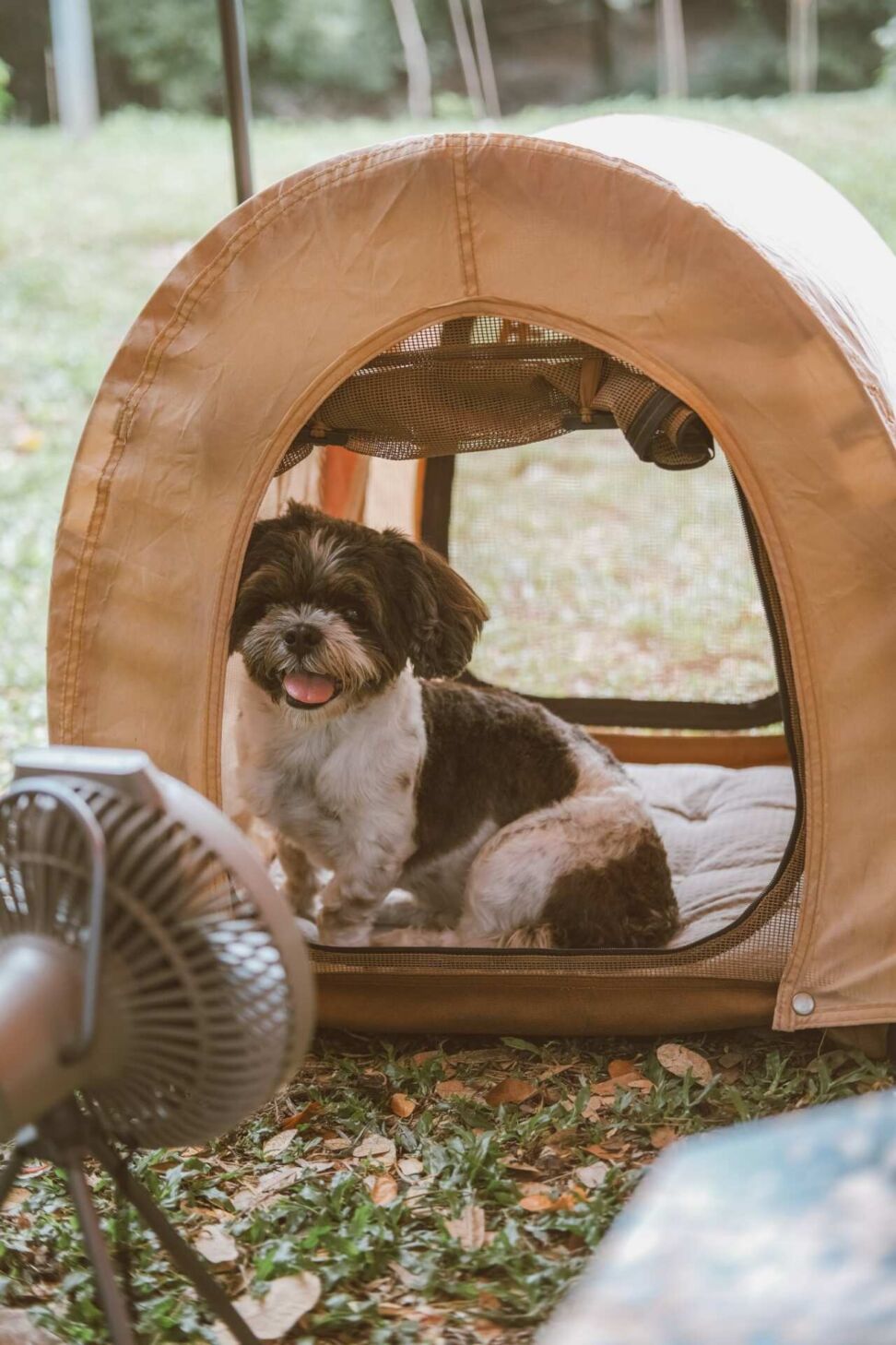 ในส่วนของสถานที่ลานกางเต้นท์ ต้องหาสถานที่ที่อนุญาตให้นำน้องหมาเข้าไปพักได้