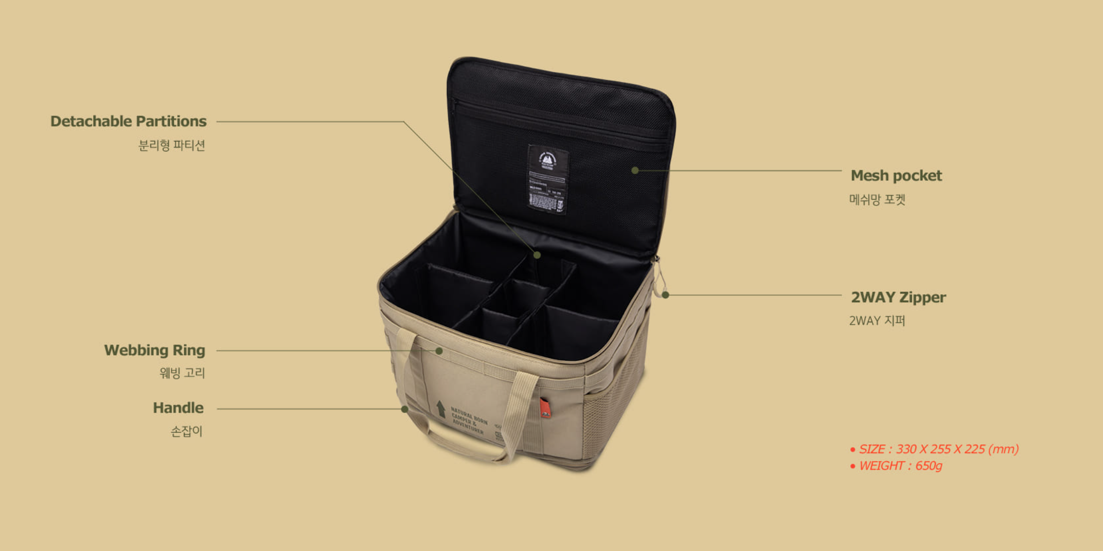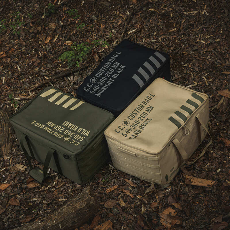 Custom Bag เป็นกระเป๋าเก็บของจากแบรนด์ Cargo Container มี 2 Size M , L ขนาด 19L และ ขนาด 52L มีให้เลือกถึง 3สี Black , Khaki , Beige ที่ปรับแต่งมาเพื่อจัดเก็บอุปกรณ์ตั้งแคมป์ต่างๆ เช่น ถุงนอน อุปกรณ์ทำอาหาร เก้าอี้ หรือตะเกียง ตามขนาด Size