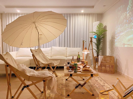 การตั้งแคมป์ที่บ้านสามารถเลือกพื้นที่กางเต็นท์ได้ ไม่ว่าจะเป็นในห้องนั่งเล่น ในสวน หรือแม้แต่ในห้องนอน ก็สามารถตกแต่งให้ออกมาเป็นสไตล์แคมป์ปิ้งได้
