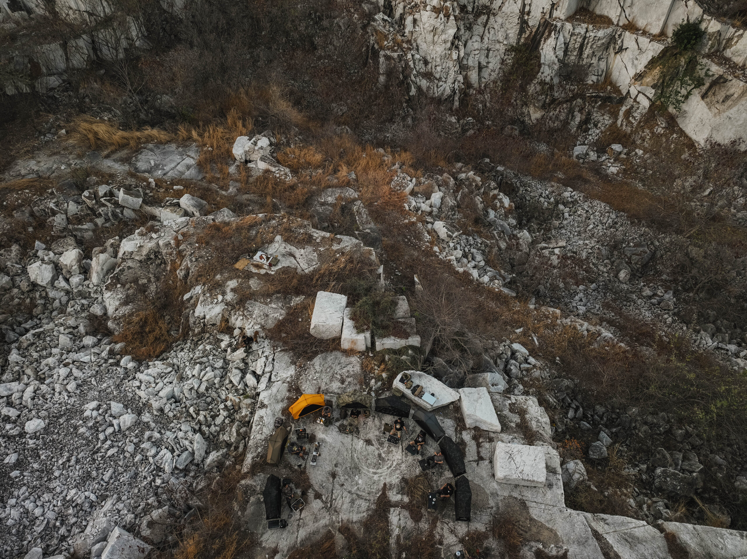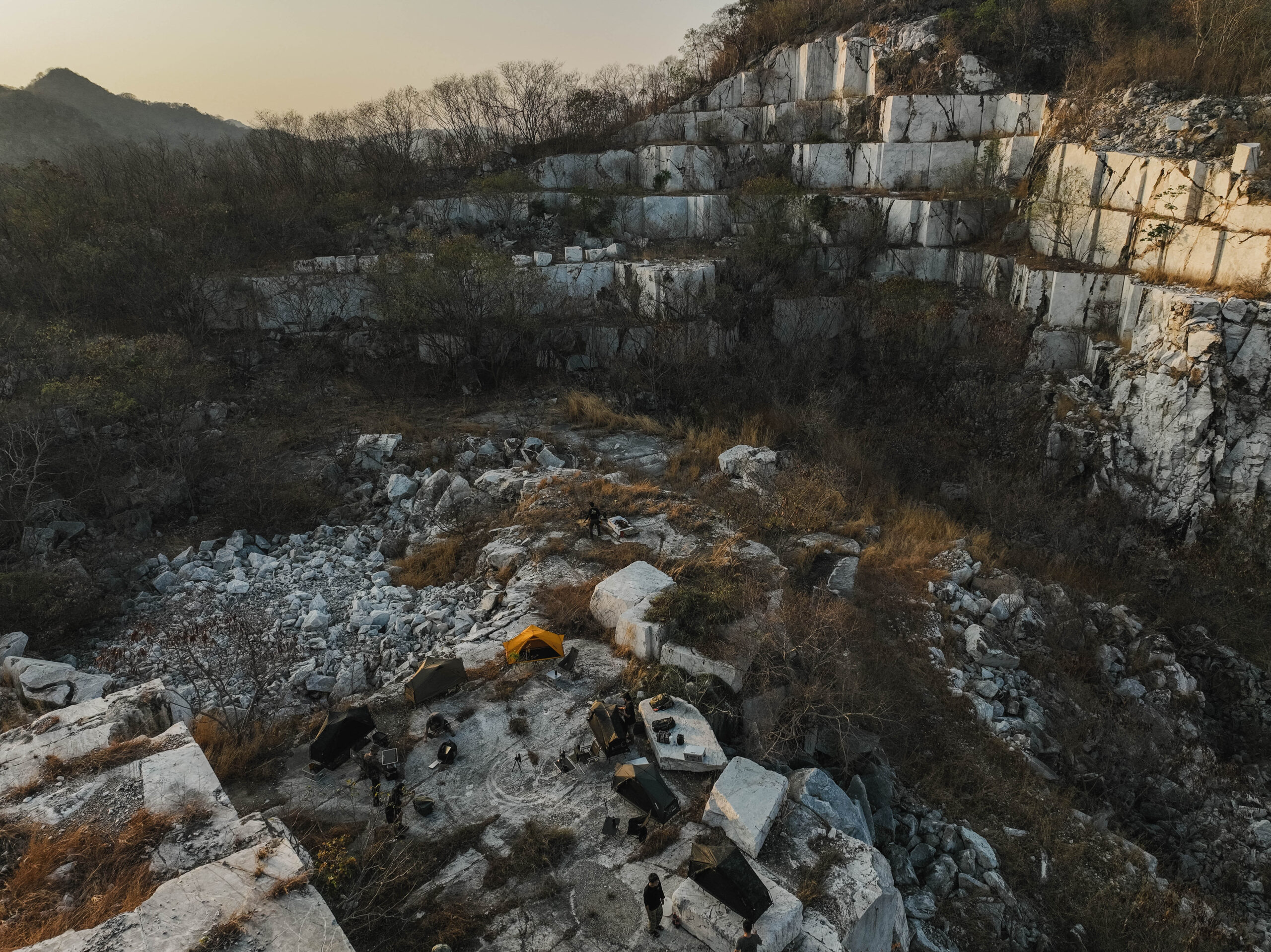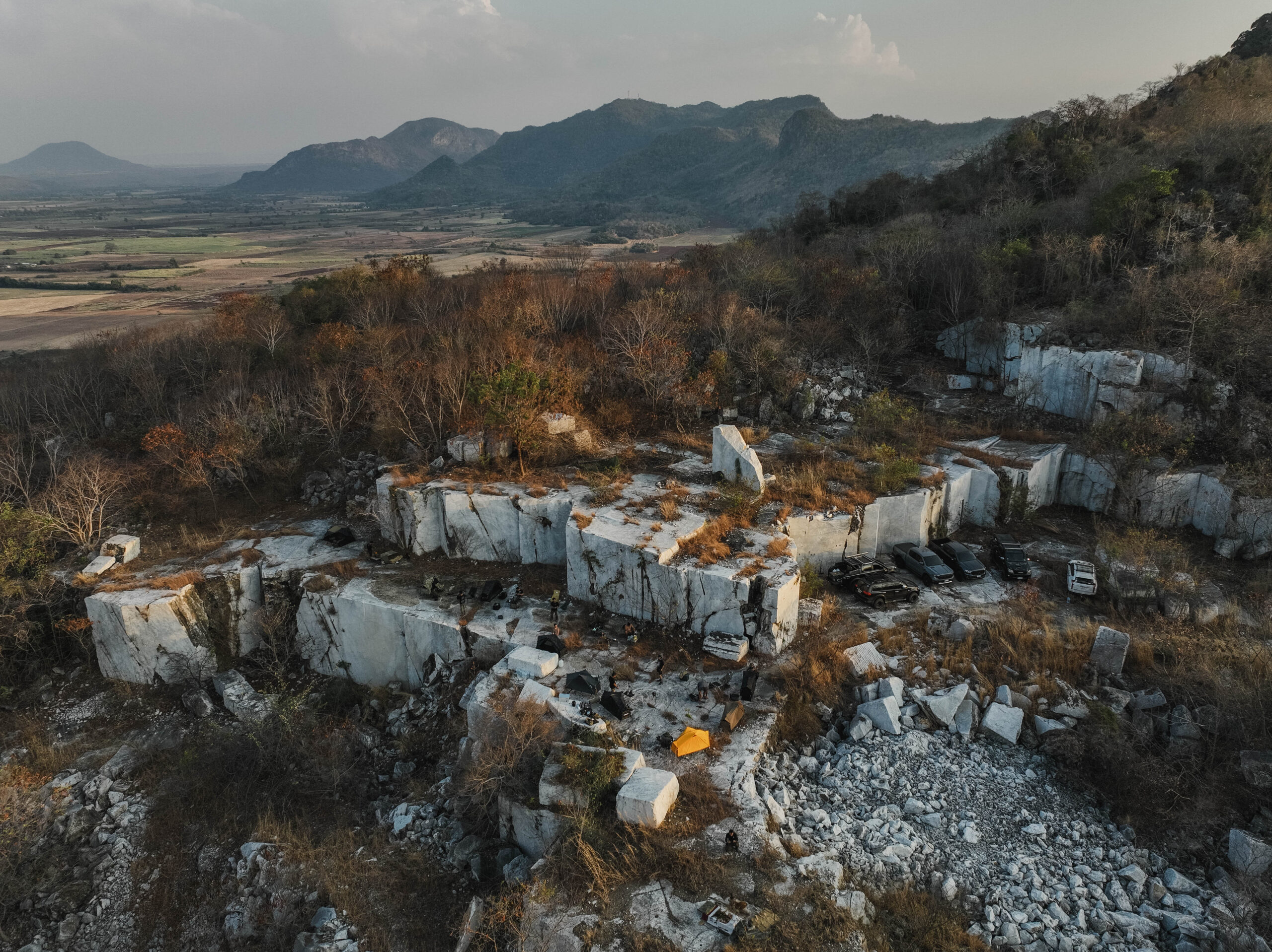 จุดหมายที่เราเดินทางกันไป เป็นเหมืองหินอ่อนที่ถูกทิ้งร้างมานาน เส้นทางเข้าไปค่อนข้างยากลำบากพอสมควร ทีมงานต้องช่วยกันตัดกิ่งไม้เปิดทางเป็นบางส่วน