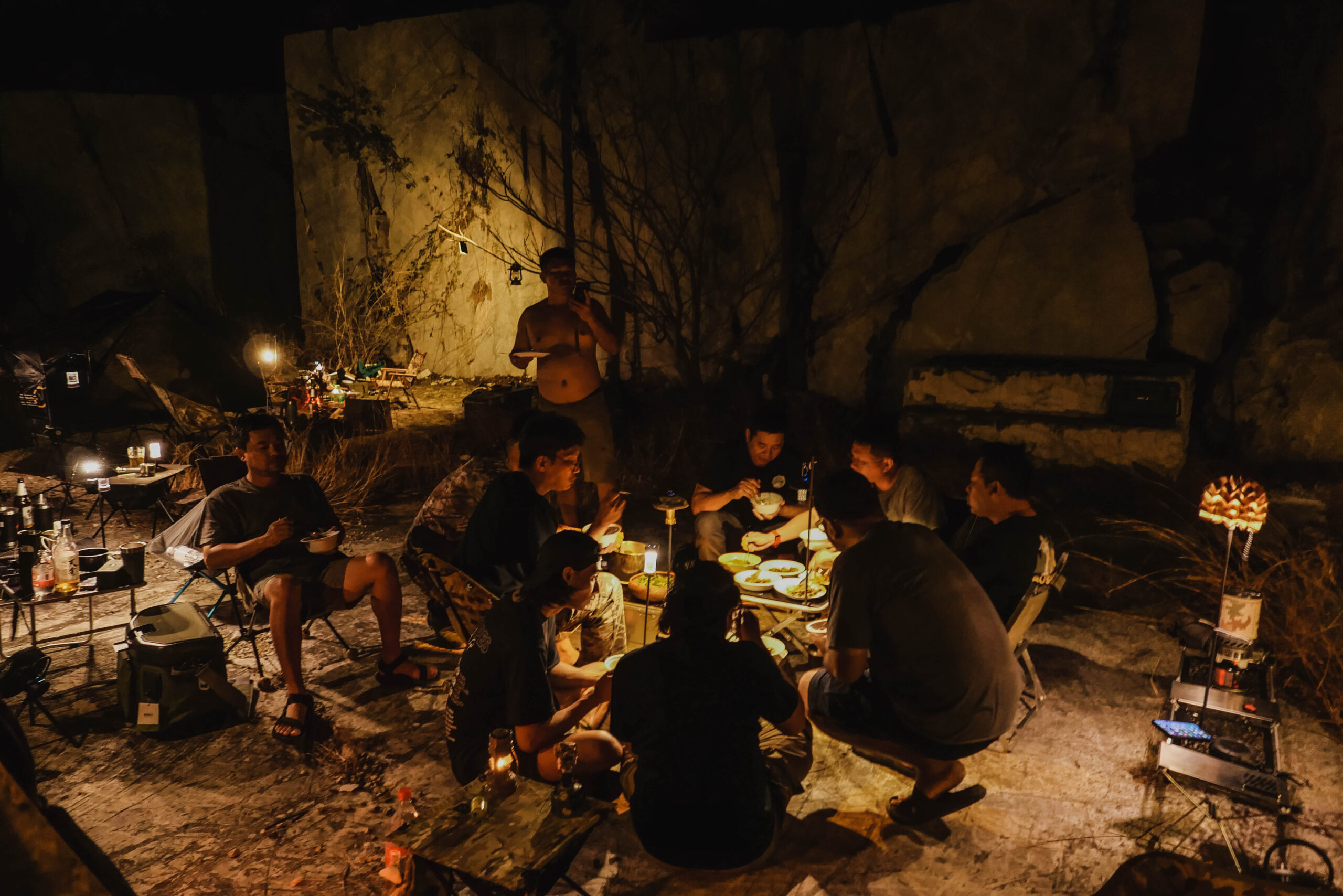 คืนนี้เป็นคืนเดือนหงาย แสงจันทร์ค่อนข้างสว่าง ทำให้ช่วงกลางคืนเราเห็นวิวของผาหินอ่อน สวยไปอีกแบบครับ เราเริ่มทำอาหารกินกัน กับเชฟประจำกลุ่มของเรา พี่เป้า อาหารอร่อยเหมือนเดิม