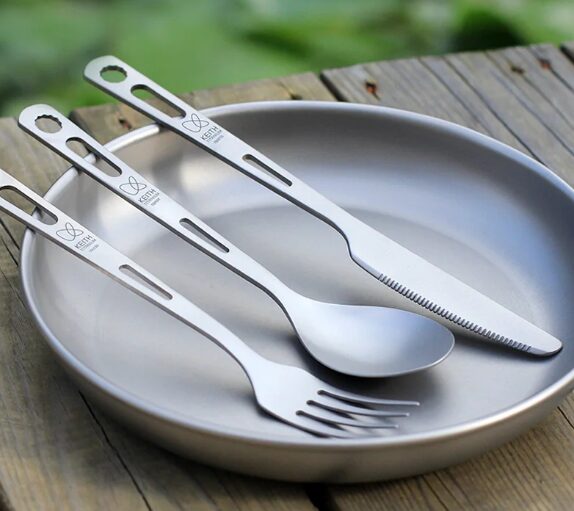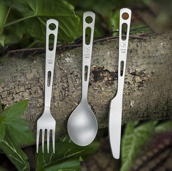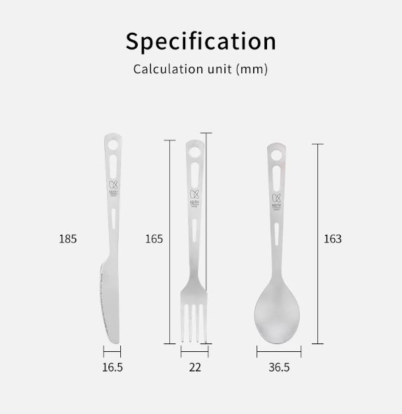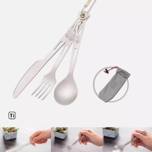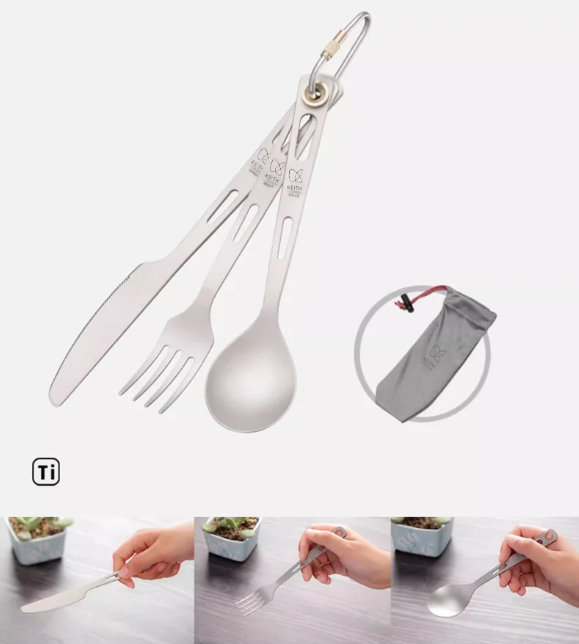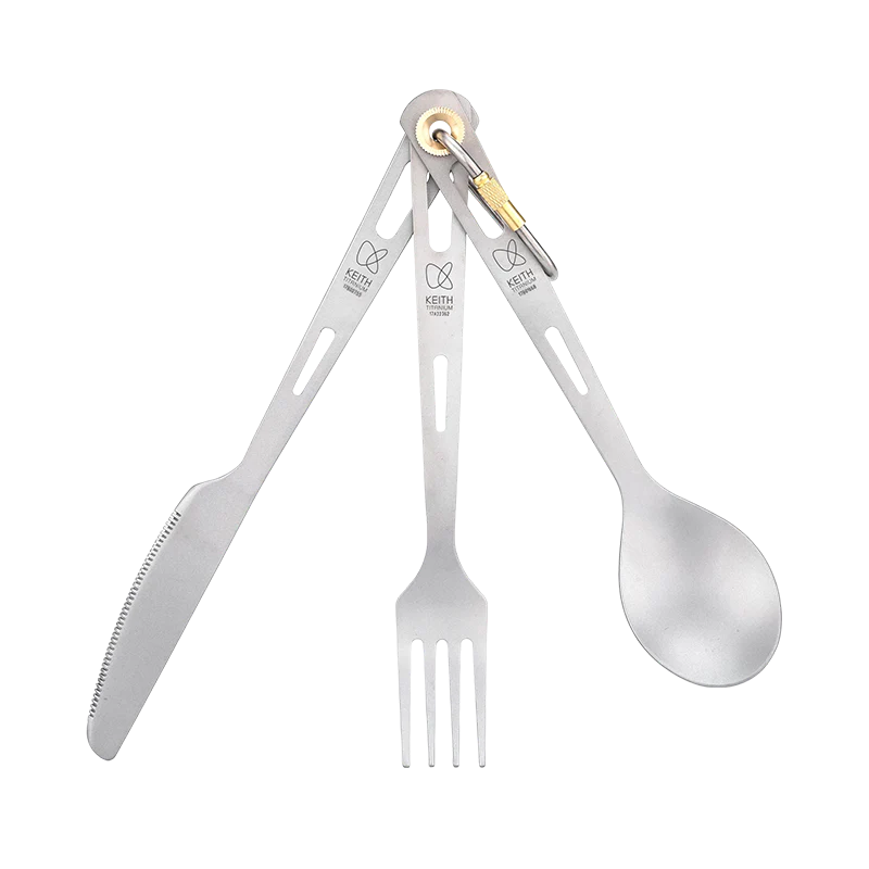 รายละเอียด : ชุดรับประทานอาหารจาก keith ประกอบด้วย ช้อน ส้อม และ มีด พร้อมตัวคล้องคาราไบเนอร์ ให้จัดเก็บทุกอย่างไว้ด้วยกัน น้ำหนักทั้งชุดเบาเพียง 53 g ผลิตจากไทเทเนียมบริสุทธิ์ 99.9%