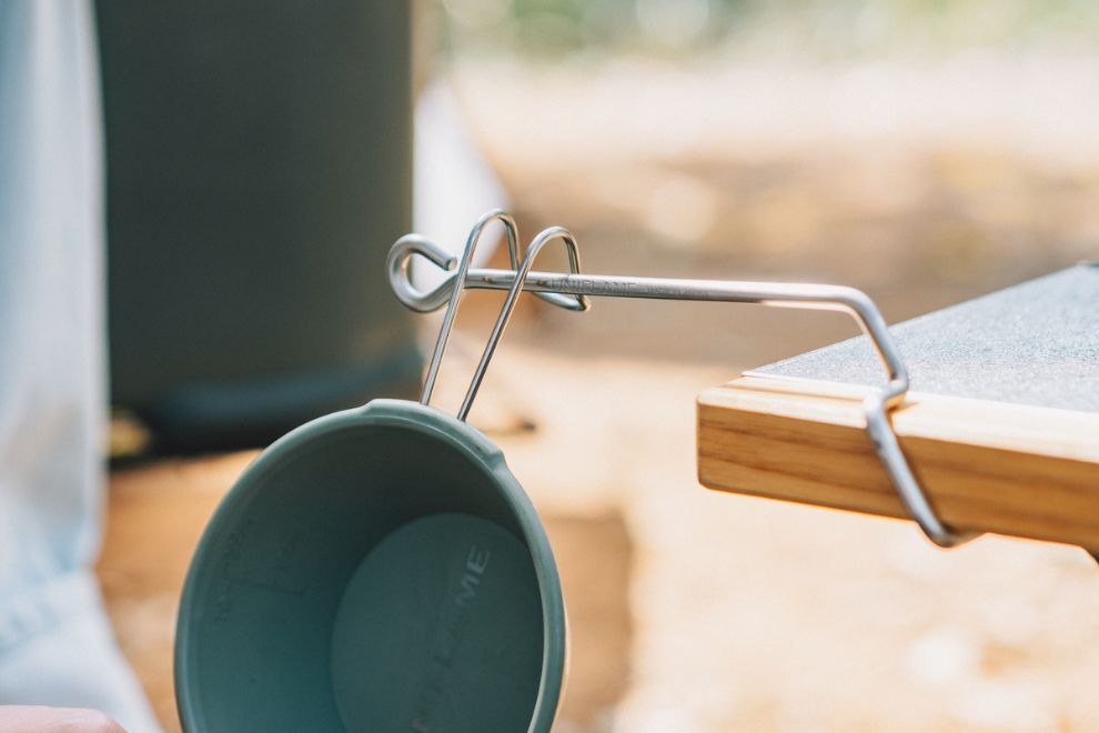 เพียงแค่เสียบเข้าไปที่ช่องว่างของด้ามไม้ คุณก็จะได้ตะขอสแตนเลสสำหรับแขวนแก้ว Sierra Cup, ทัพพี, ถุงขยะหูหิ้ว หรือคีมคีบถ่าน ช่วยให้หยิบจับใช้งานสะดวกและไม่ต้องวางของเกะกะบนหน้าโต๊ะ ตัวปลายตะขอออกแบบเป็นห่วงปิด (Loop shape) ช่วยป้องกันไม่ให้ของที่แขวนหลุดร่วงโดยไม่ตั้งใจ