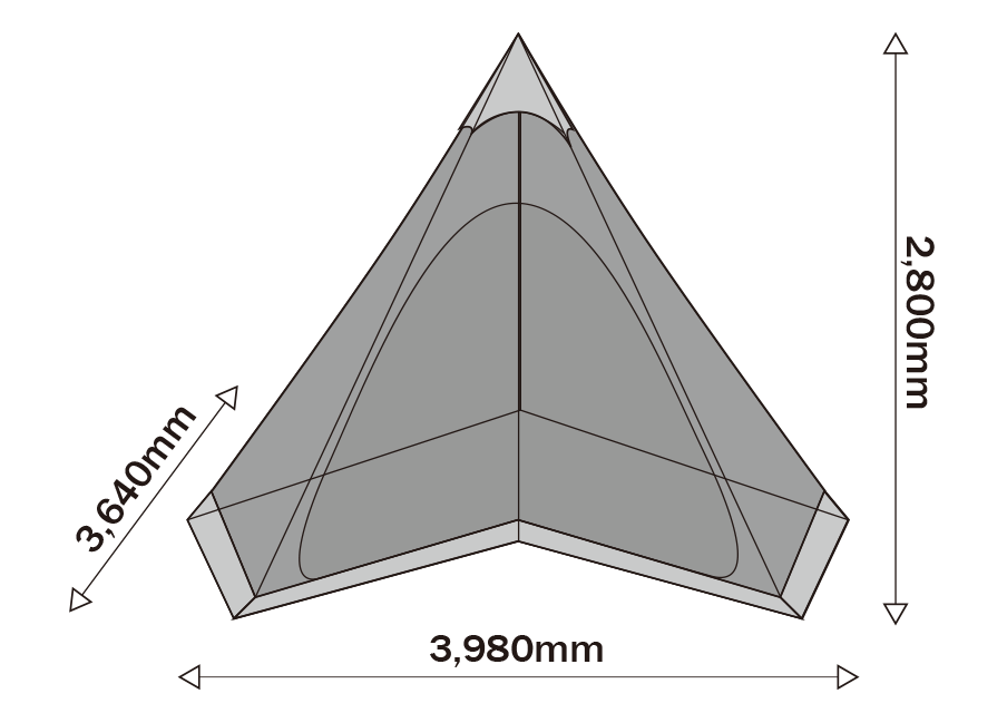 ขนาดใช้งาน : 3,980 x 3,640 x 2,800 (สูง) มม.