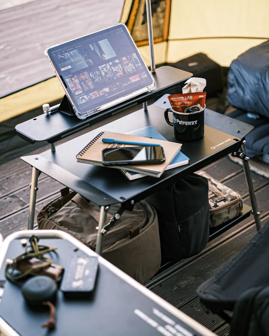 รายละเอียด : Campbell table จาก Comma nine โต๊ะอเนกประสงค์ที่มีฟังก์ชั่นการใช้งานที่หลากหลาย สามารถใช้เป็นโต๊ะเดี่ยว หรือใช้ร่วมกับ Extend Table ได้ ขึ้นอยู่กับการจัดของผู้ใช้งาน วัสดุทำจากอลูมิเนียม แข็งแรง ทนทาน น้ำหนักเบา มาพร้อมราวแขวนอเนกประสงค์ และกระเป๋าสำหรับจัดเก็บ