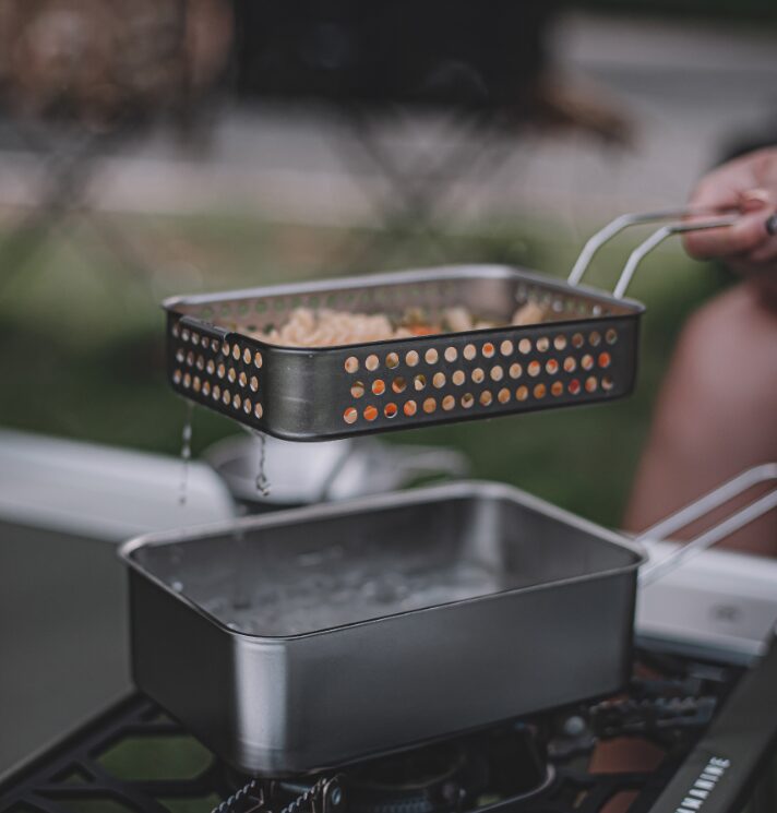 ขยายฟังก์ชันการทำอาหารของคุณให้หลากหลายยิ่งขึ้นด้วยตะกร้าสำหรับทอด KINOX ที่ออกแบบมาเพื่อใช้งานร่วมกับหม้อสนาม KINOX โดยเฉพาะ ผลิตจากสแตนเลสสตีล STS304 ทั้งชิ้น จึงแข็งแรงทนทานสูง ปลอดภัย และไม่เป็นสนิม เหมาะอย่างยิ่งสำหรับการทอดอาหารแบบ Deep-fry, ใช้สะเด็ดน้ำมัน หรือใช้เป็นตะกร้าล้างผักผลไม้ เป็นอุปกรณ์เสริมที่ชาวแคมป์ปิ้งควรมีติดไว้