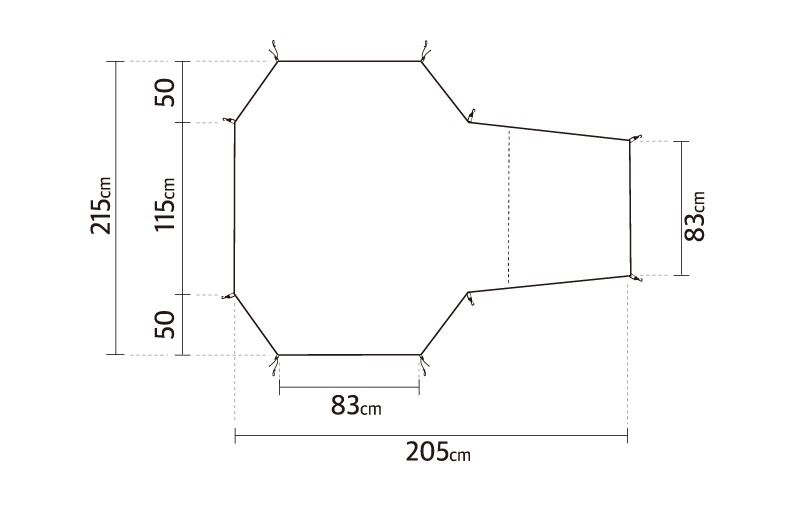 - จุดเด่นที่แตกต่างจาก Footprint ทั่วไป คือขนาดความกว้างที่ออกแบบมาให้ยื่นออกมาคลุมพื้นดินบริเวณ Vestibule (พื้นที่หน้าประตู) ช่วยให้คุณวางเป้ รองเท้า หรืออุปกรณ์ทำอาหารได้โดยไม่เปื้อนดินและไม่ชื้น แม้พื้นดินจะเปียกแฉะ