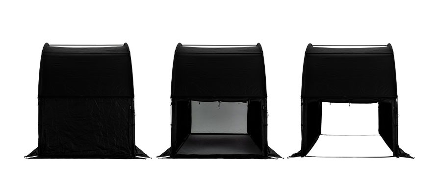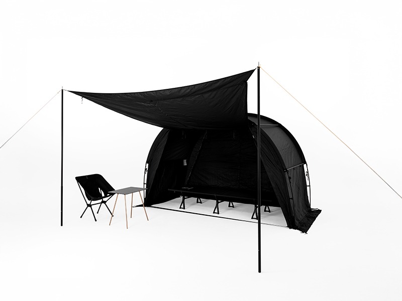 ออกแบบด้วยระบบโมดูลาร์ที่สามารถปรับขยายได้ตามต้องการ ติดตั้งง่ายด้วย Jake’s Boots ที่ยึดเสาได้แน่นหนา แม้เป็นเต็นท์แบบอุโมงค์แต่สามารถกันลมได้ดีด้วยคานแนวนอน