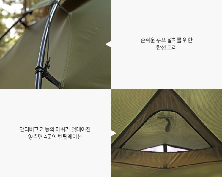 – Shelter : SKIN-Nylon400 PU/SIL(waterproof 2,000mm)