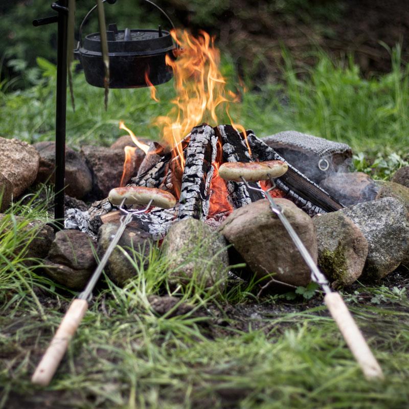 เหล็กยาวสำหรับเสียบย่าง ใช้เสียบไส้กรอกย่าง ผัก ขนมปัง และอาหารอื่น ๆ ความยาวของ Campfire Skewer สามารถปรับยืด-หดได้ตามต้องการ ป้องกันความร้อนจากกองไฟได้ ก่อนยืด 63 ซม. ขยายได้ยาวสุด 92 ซม. ผลิตจากสแตนเลสแข็งแรงทนทาน ทำความสะอาดง่าย ด้ามจับทำจากไม้บีชคุณภาพสูงออกแบบมาให้เข้ากับรูปมือ