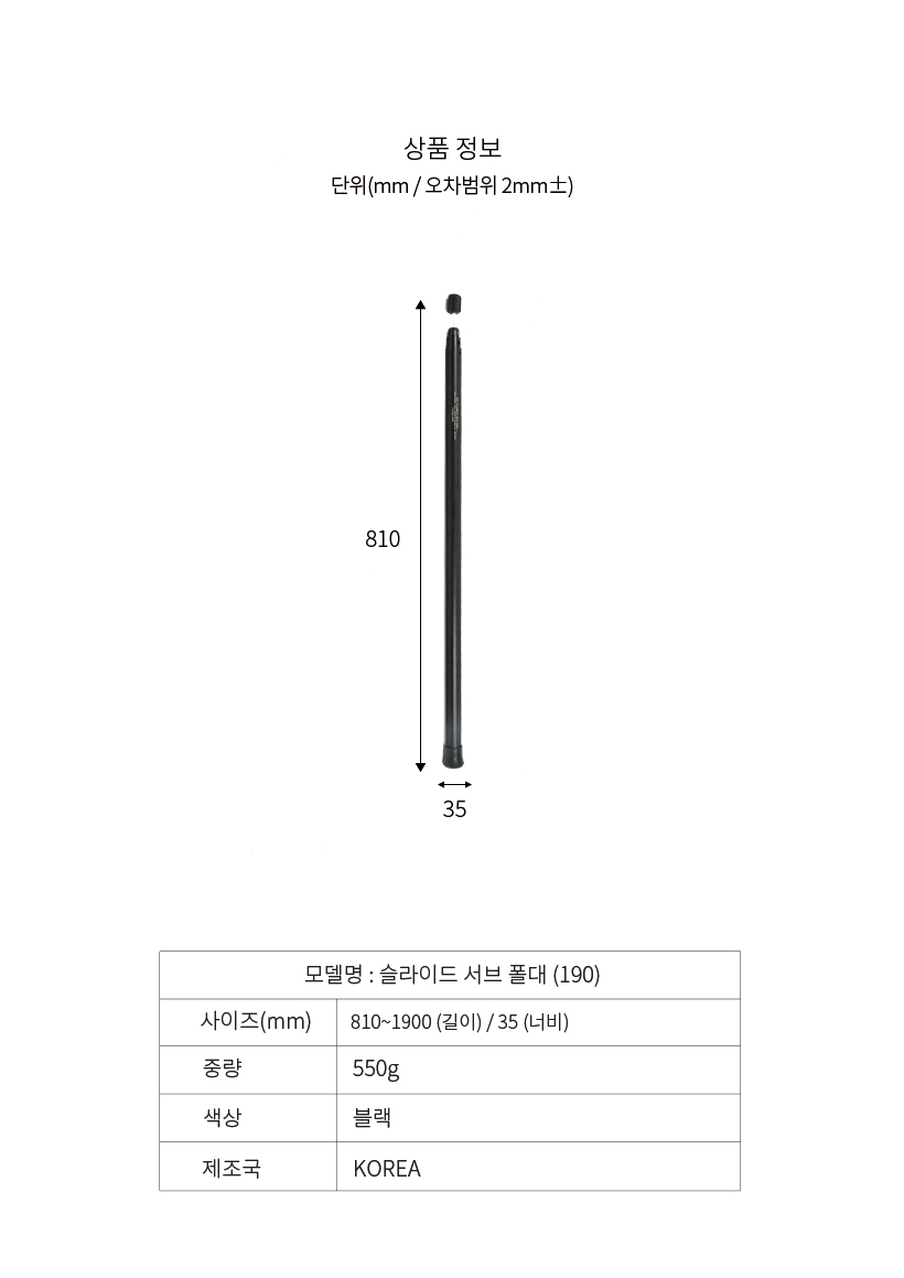 ขนาดใช้งาน : 81-190 ซม. (เส้นผ่าศูนย์กลาง 35 มม.)
