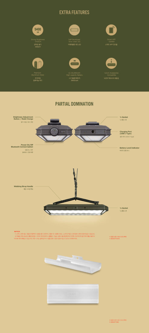 CARGO CONTAINER ‘SURROUND LIGHT PRO’ นวัตกรรมแสงสว่างรอบทิศทางที่สมบูรณ์แบบสำหรับทุกกิจกรรม ไม่ว่าจะเป็นการตั้งแคมป์กลางแจ้ง การทำกิจกรรมในที่มืด หรือแม้แต่เป็นแสงสำรองในกรณีฉุกเฉิน ด้วยโครงสร้าง LED เก้าด้านที่ไม่เหมือนใคร ทำให้สามารถให้แสงสว่าง 360 องศาอย่างสม่ำเสมอโดยไม่มีจุดบอด