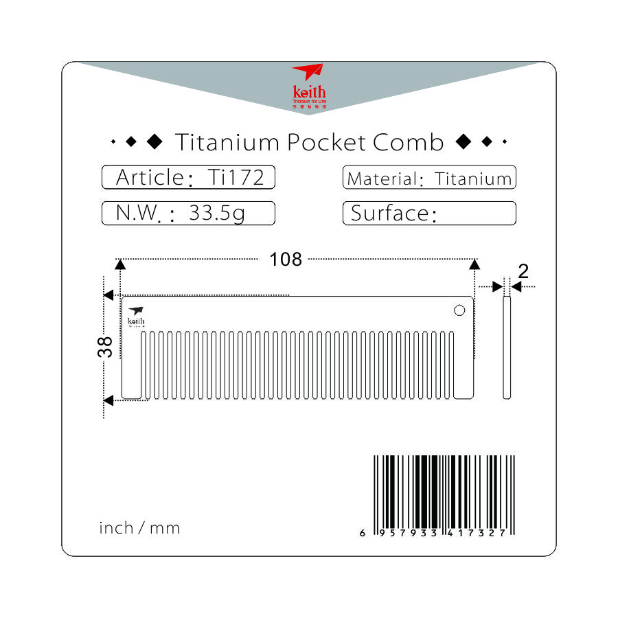 รายละเอียด : หวีไทเทเนียม Keith ทรงเหลี่ยม รหัส Ti1732 น้ำหนักเบาเพียง 33.5 g