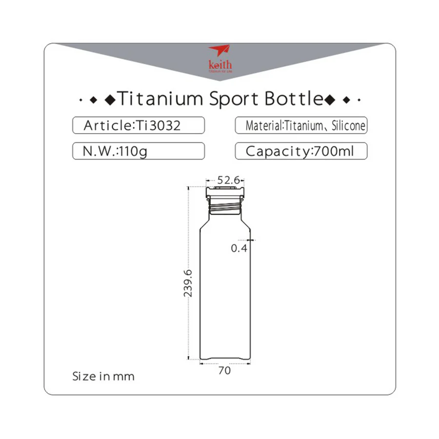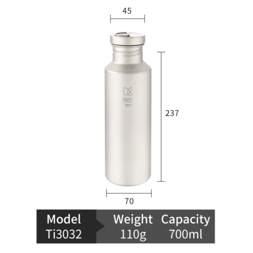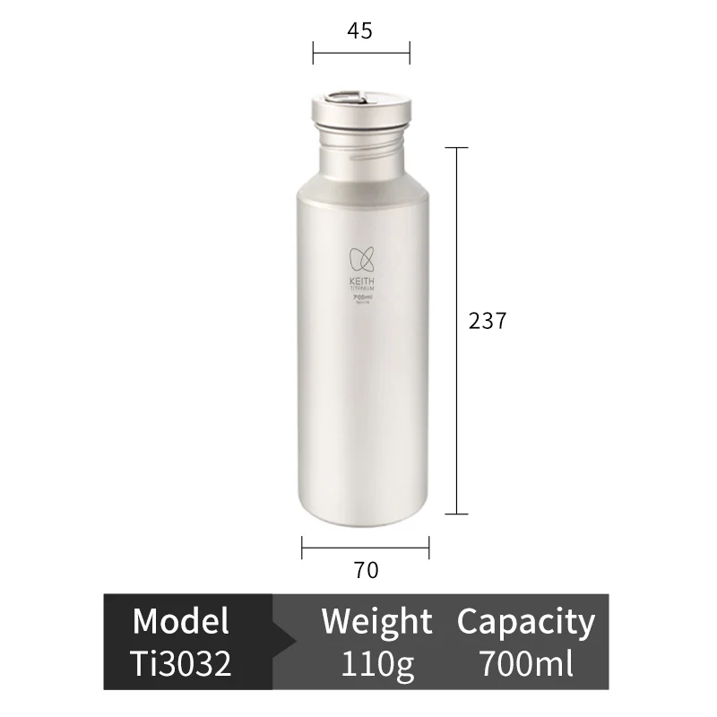 รายละเอียด : ขวดน้ำไทเทเนียมจาก keith ขนาด 700ml ผลิตจากโลหะไทเทเนียมความบริสุทธิ์ 99.9% น้ำหนักเบา หนักเพียง 110 กรัม เพราะผลิตจากไทเทเนียมจึงมีคุณสมบัติที่แข็งแรงทนทาน ไม่มีสารพิษ ปลอดภัยในการใช้ ไม่เป็นสนิม ทนการกัดกร่อน และทนความร้อนได้สูงถึง 1600 องศาเซลเซียส จึงไม่เสียรูปจากการโดนความร้อน ยิ่งอยู่ในที่เย็นมาก ไทเทเนียมจะมีความแข็งแรงมากยิ่งขึ้นได้ถึงระดับความเย็น – 253 องศาเซลเซียส จึงไม่เเปราะเวลาโดนความเย็นมากๆเหมือนวัสดุอื่น ขนาดเล็กพกพาง่าย ที่ผิวขัดทราย ให้ความหรูหราของขวดน้ำไทเทเนียม เหมาะสำหรับเป็นขวดน้ำพกติดตัวในการเดินทางทุกรูปแบบ