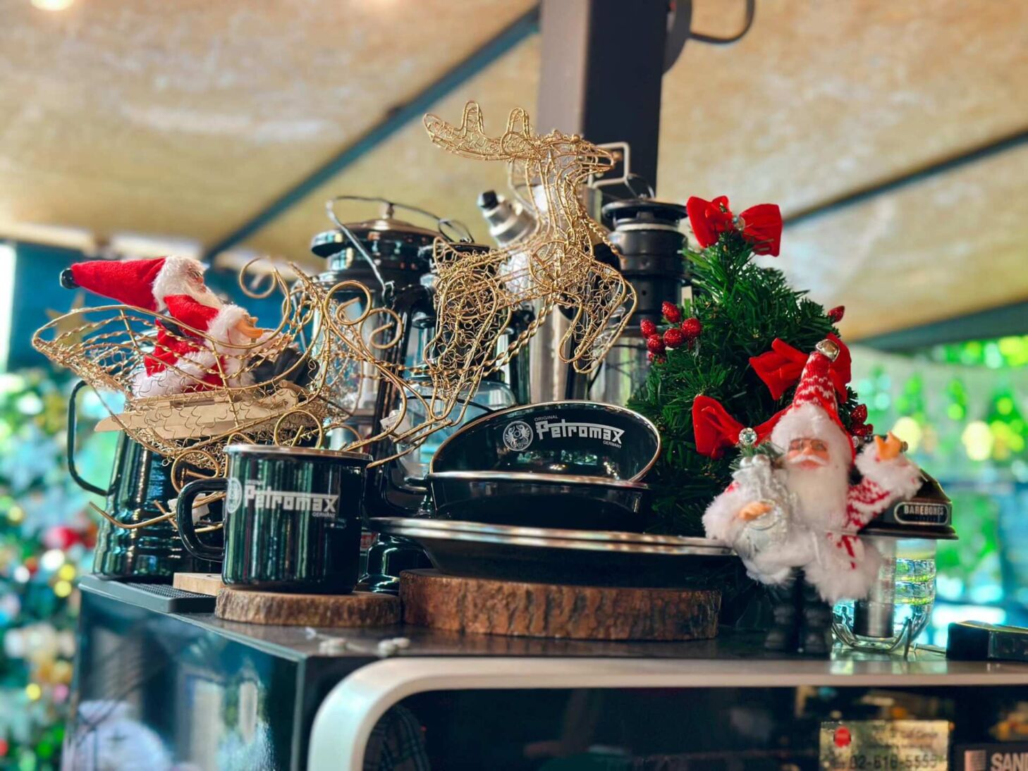 ทางร้านจัดแนวแคมป์ปิ้ง แต่จะเปลี่ยนการจัดร้านไปตามเทศกาลต่างๆ มีมุมถ่ายรูปเยอะ ด้านในเปิดประตูเข้าไปหอมกลิ่นโลกของเบเกอรี่ และยังมีอาหาร เครื่องดื่ม เบเกอรี่ ไอศรีม บิงซู ให้เลือกมากมาย ด้านนอกตกแต่งด้วยอุปกรณ์แคมป์ปิ้ง ให้อารมณ์การออกไปตั้งแคมป์กับเพื่อน ถือเป็นคาเฟ่สไตล์แคมป์ปิ้ง ที่ต้องชวนเพื่อนๆ ไปเช็คอินกัน ร้านนี้เปิดทุกวัน ไม่มีวันหยุดครับ