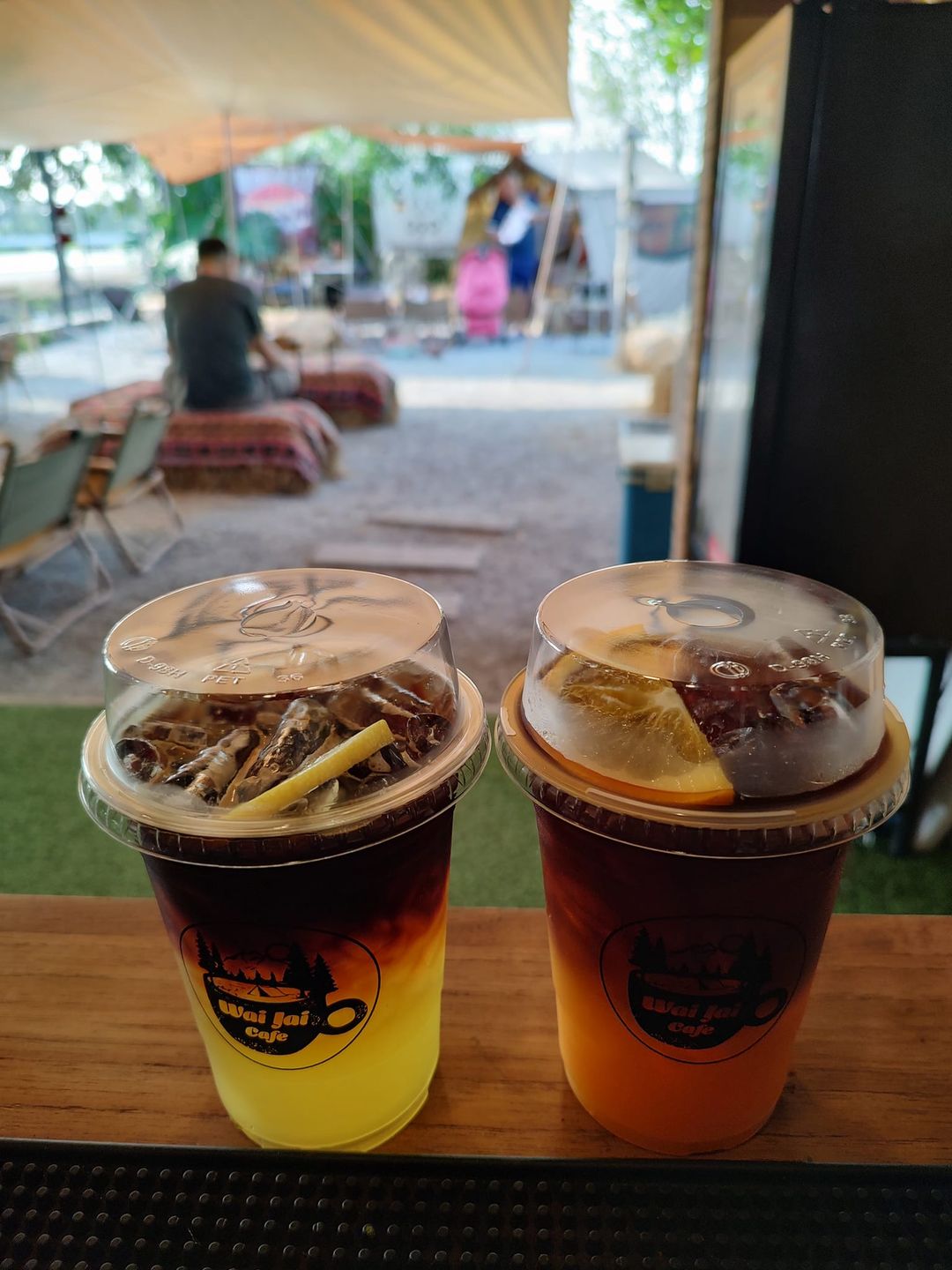 ร้านตกแต่งด้วยอุปกรณ์แคมป์ปิ้งแน่ๆ ทั้งเต้นท์ ทาร์ป โต๊ะ เก้าอี้ ตะเกียงโคมไฟ ที่จัดตกแต่งได้อยากลงตัว ให้ฟีลเหมือนเราได้ออกไปกางเต็นท์ตั้งแคมป์เลย รอบๆ ร้านมีพื้นที่สีเขียวค่อนข้างเยอะ บรรยากาศริมน้ำ(คลองประปา) บอกเลยว่าเป็นอีกหนึ่งร้านที่น่ามานั่งชิล ลองแวะไปได้บรรยากาศดีอยู่นะครับ