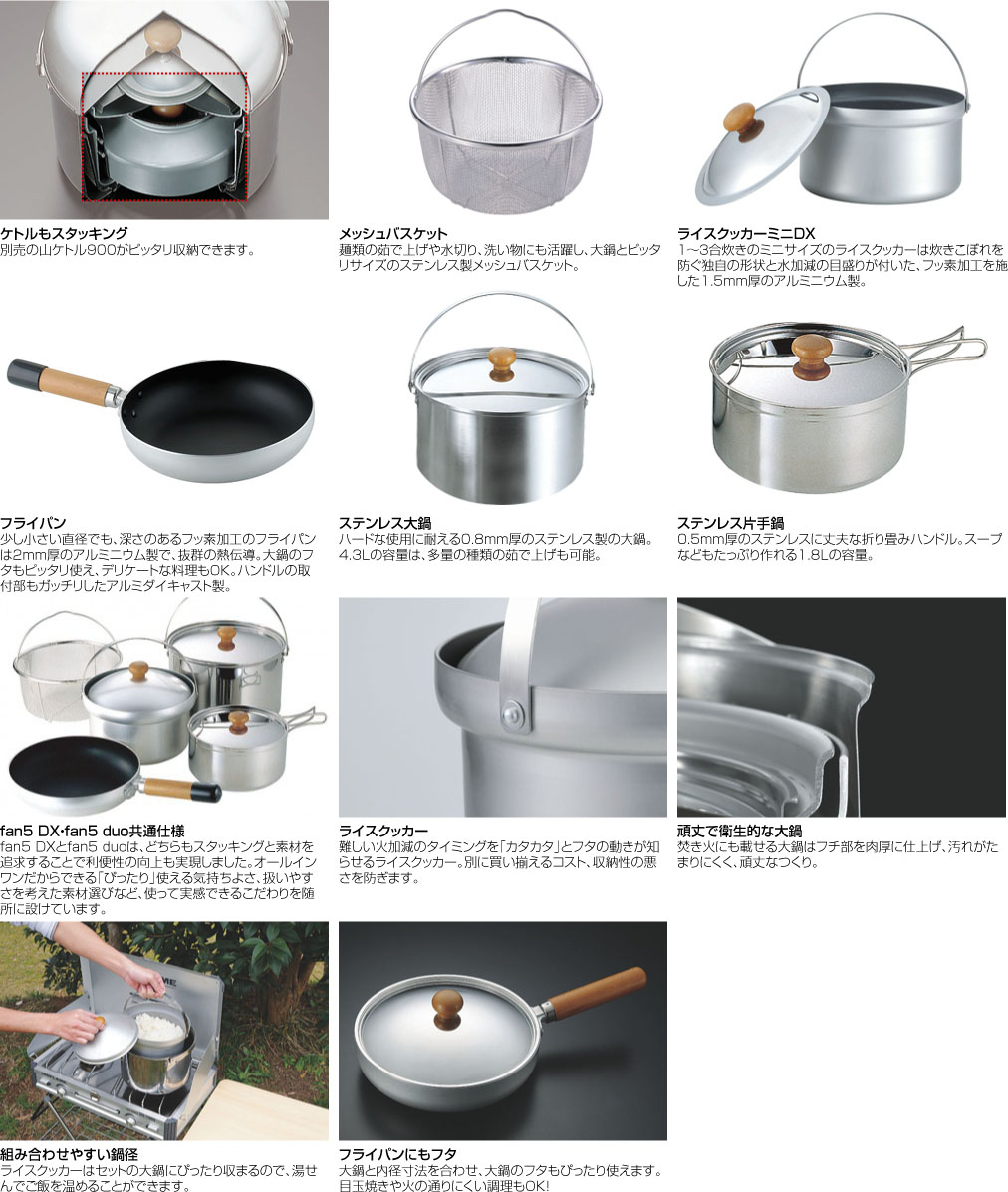 ชุดทำอาหารที่ดีที่สุดของ Uniflame จากประเทศญี่ปุ่น ที่ผลิตต่อเนื่องมานานกว่า 30 ปี เหมาะสำหรับแคมป์คาร์ ขนาดใช้งานสำหรับครอบครัว ประมาณ 2-5 คน สามารถเก็บวางซ้อนกันเป็นชุดเดียวได้พกพาสะดวก ในชุดประกอบด้วย