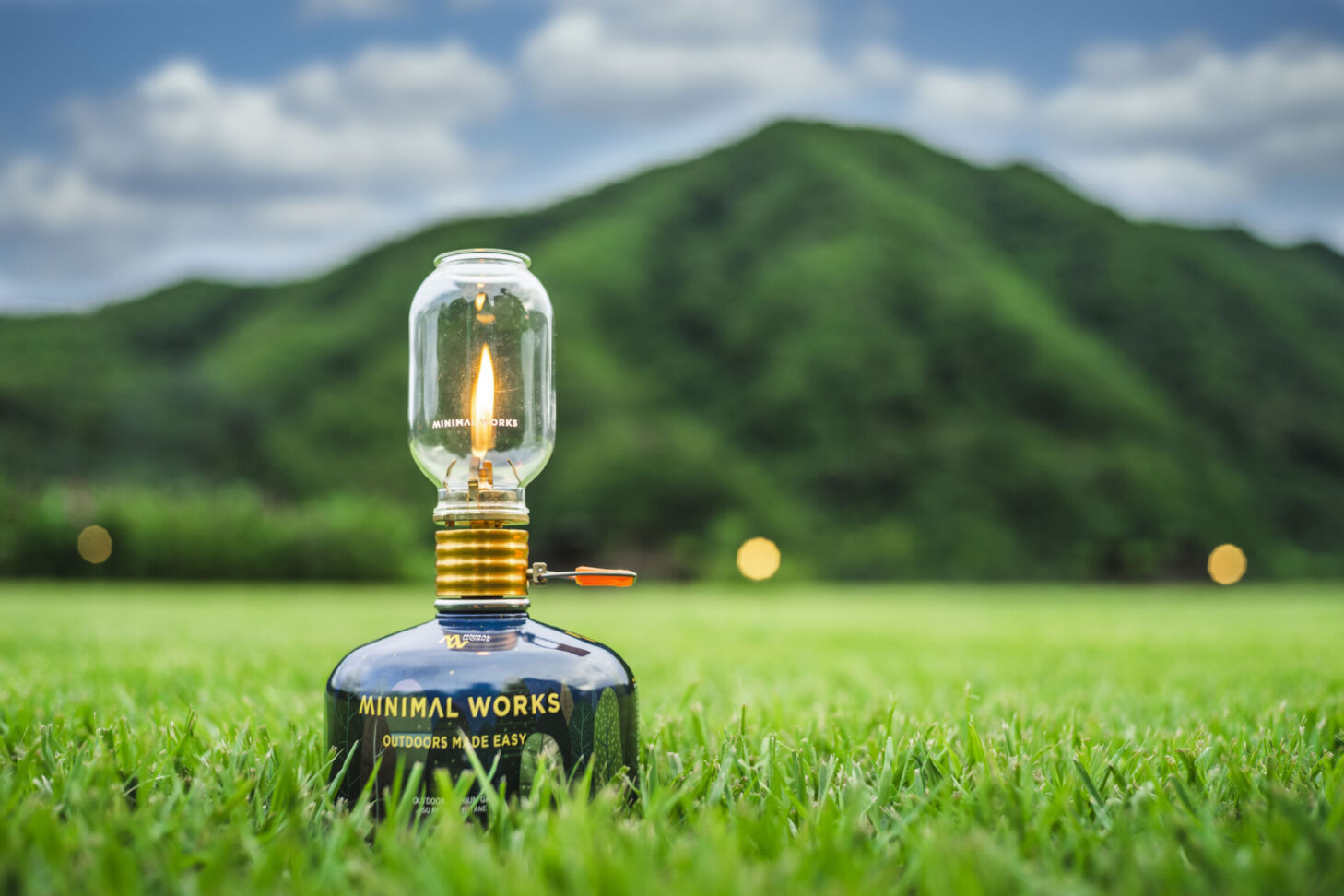 ตะเกียงแก๊สเปลวเทียน หลอดแก้วทรงกระบอกที่มีความเป็นเอกลักษณ์ของแบรนด์ Minimal Works ที่ได้แรงบันดาลใจจากหลอดไฟ Edison โป๊ะแก้วนำเข้าตรงจากประเทศเยอรมนีเป็นงานฝีมือโดยช่างฝีมือการทำแก้ว และมาพร้ออมเคสไม้ เป็นตะเกียงใช้รวมกับแก๊สทรงซาลาเปาได้อย่างลงตัว ให้แสงนุ่มนวล โทนเหลืองอบอุ่น สามารถบังลมได้ดี จุดได้ทั้งคืนไม่มีดับ