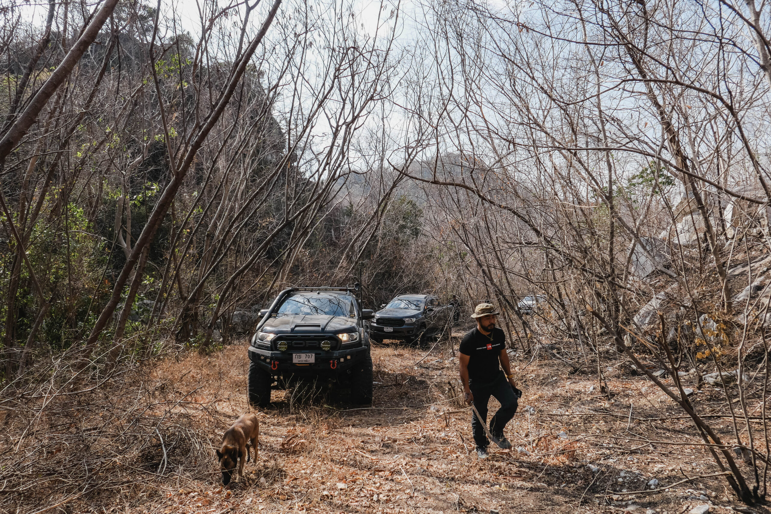 จุดหมายที่เราเดินทางกันไป เป็นเหมืองหินอ่อนที่ถูกทิ้งร้างมานาน เส้นทางเข้าไปค่อนข้างยากลำบากพอสมควร ทีมงานต้องช่วยกันตัดกิ่งไม้เปิดทางเป็นบางส่วน