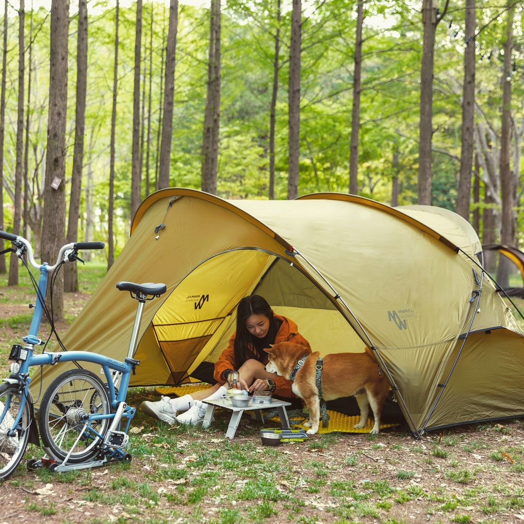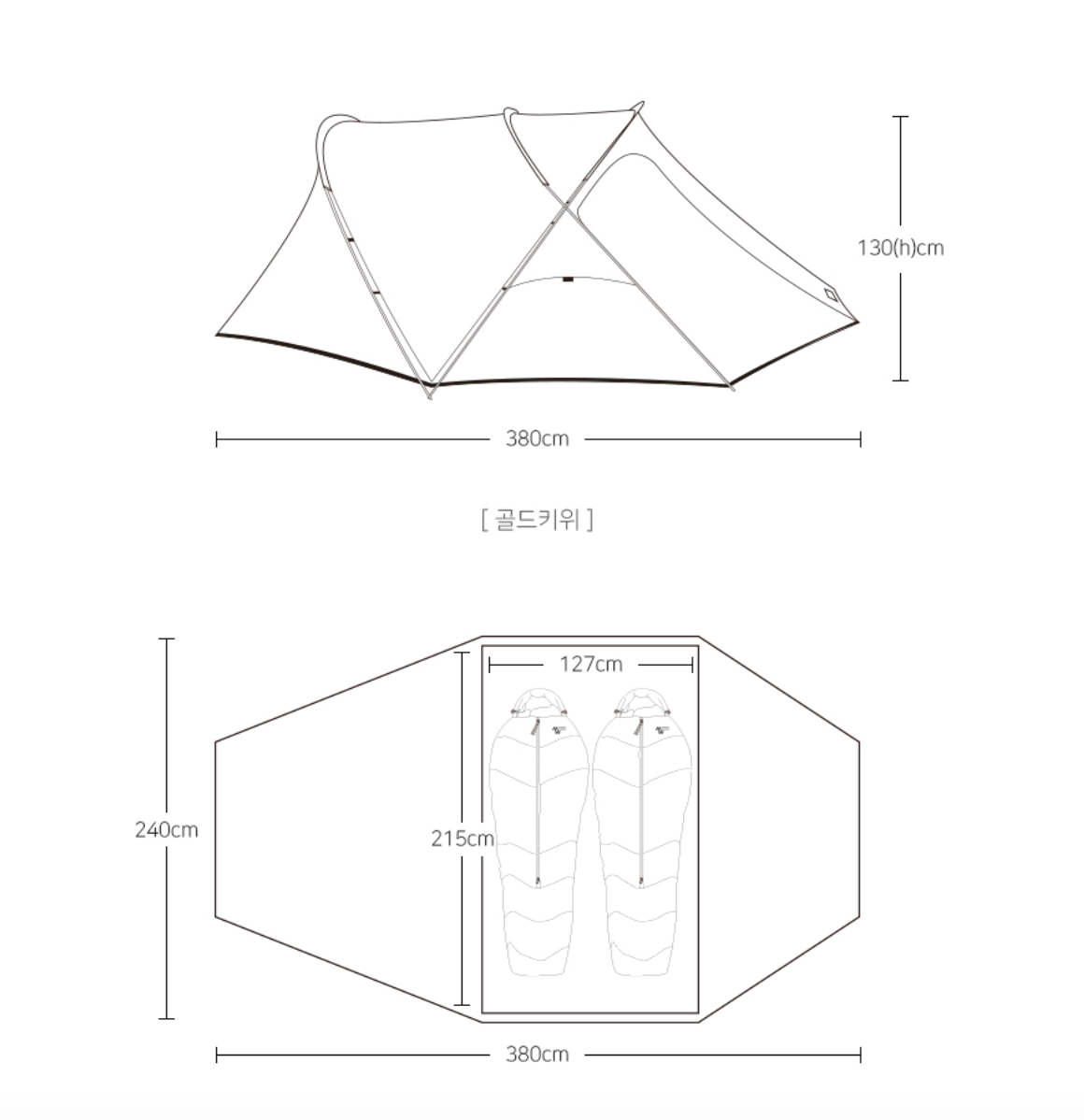 เต็นท์ Gold Kiwi ที่มีโครงสร้างเสาไขว้คู่ที่มีน้ำหนักเบาและพกพาสะดวก ติดตั้งและถอดประกอบได้ง่ายมาก ห้องนอนและห้องด้านหน้าสามารถแยกออกจากกันได้ คุณจึงสามารถเพลิดเพลินกับการทำอาหารและพักผ่อนแยกกันได้ และเมื่อถอดอินเนอร์ออก คุณจะใช้พื้นที่ได้กว้างขึ้น สามารถเก็บสัมภาระขนาดใหญ่ เช่น จักรยานและจักรยานพับได้