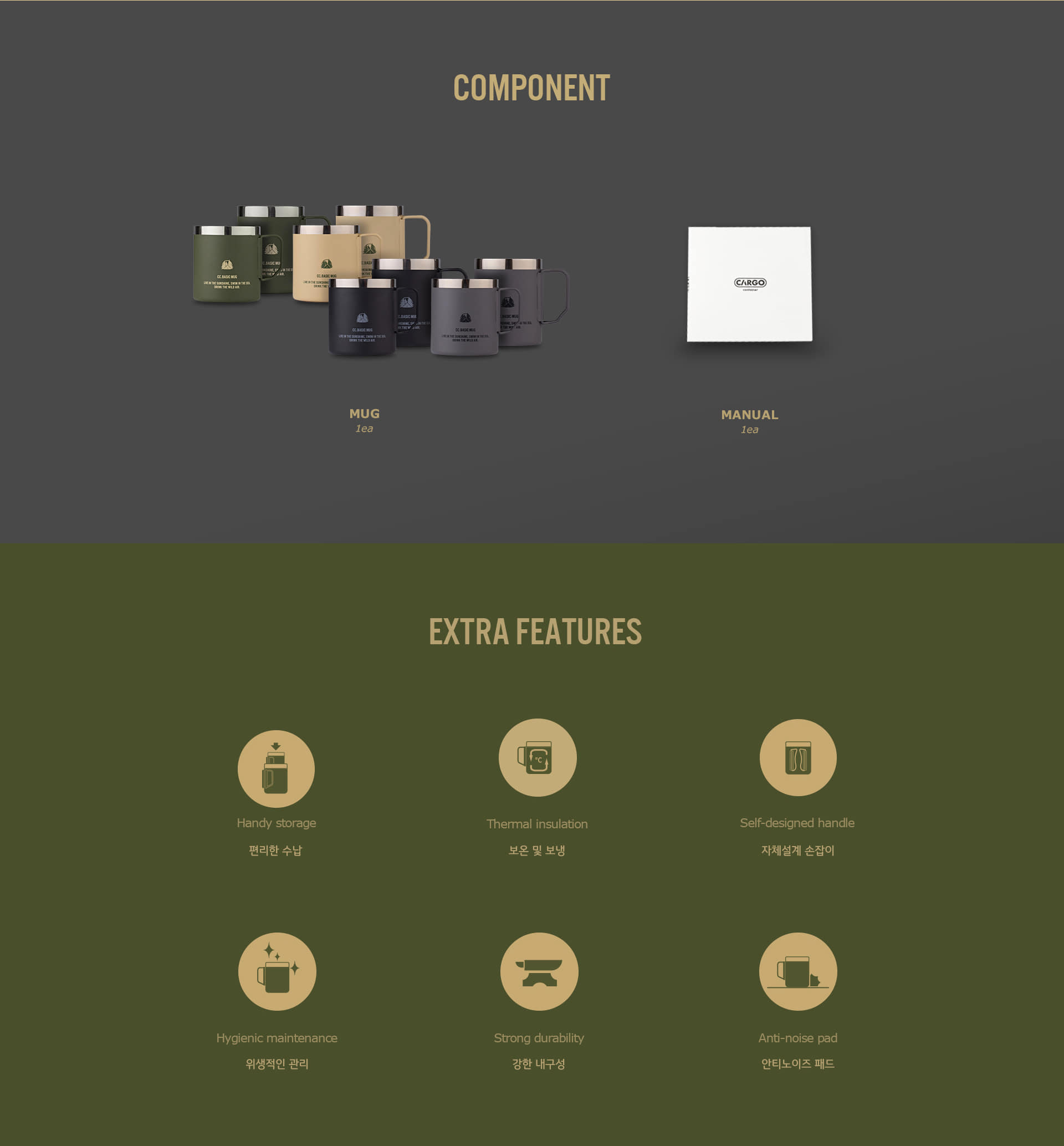 รายละเอียด : CARGO CONTAINER BASIC MUG แก้วสเตนเลสสตีลคุณภาพสูงที่ออกแบบมาเพื่อการใช้งานทั้งกลางแจ้งและในชีวิตประจำวัน มีให้เลือก 2 ขนาด คือ 300 มล. และ 450 มล. โดดเด่นด้วยความทนทาน ปราศจากสาร BPA และรักษาอุณหภูมิได้ดีด้วยโครงสร้างผนัง 2 ชั้น ดีไซน์ทันสมัยด้วย 4 สีสันเอกลักษณ์ พร้อมด้ามจับพับได้และฐานซิลิโคนกันลื่น สามารถซ้อนกันได้เพื่อประหยัดพื้นที่ ทำความสะอาดง่าย และเป็นมิตรต่อสิ่งแวดล้อม เหมาะสำหรับผู้ที่ชื่นชอบการผจญภัยและต้องการแก้วคุณภาพดีสำหรับใช้ในทุกโอกาส ไม่ว่าจะเป็นการตั้งแคมป์ ใช้ที่บ้าน ที่ทำงาน หรือระหว่างการเดินทาง