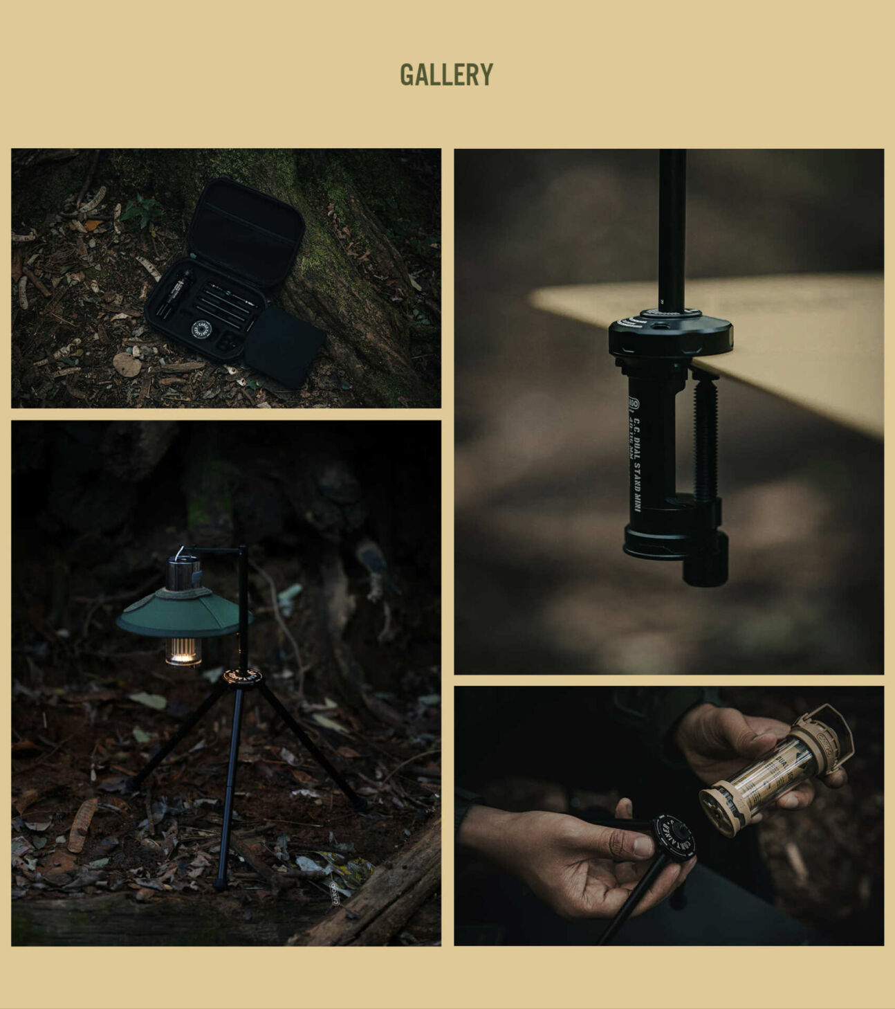 ประกอบด้วยชิ้นส่วนทั้งหมด 15 ชิ้น คุณสามารถประกอบเป็นรูปร่างที่ต้องการได้ขึ้นอยู่กับการใช้งาน มีการฝังตัวถัง 2 ด้านเพื่อยึดวัตถุที่เป็นชิ้นๆ เช่น โต๊ะ เก้าอี้ หรือต้นไม้ไว้อย่างสะดวก นอกจากนี้ยังสามารถประกอบเป็นแท่นวาตะเกียงแบบพกพาได้ และตัว SUPPORT RODs 6 อันสามารถใช้เป็นขาตั้งสามขาหรือปรับความสูงได้