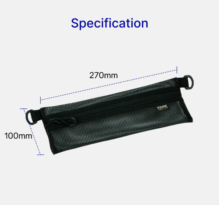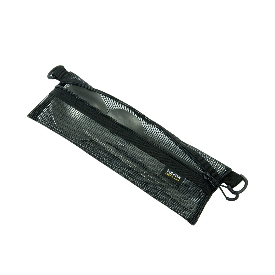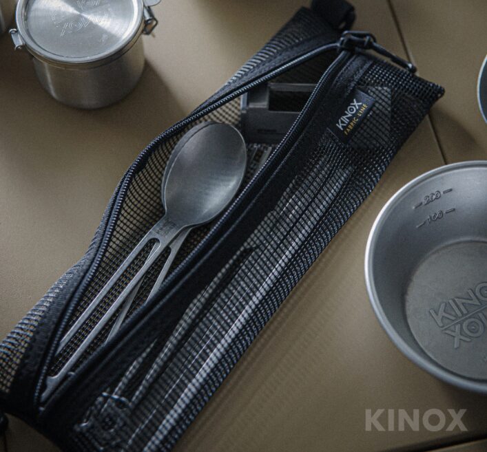 กระเป๋าตาข่ายอเนกประสงค์จาก KINOX ที่ออกแบบมาเพื่อการจัดเก็บอุปกรณ์ทำครัวขนาดเล็ก, ช้อนส้อม, หรือของใช้อื่นๆ ตัวกระเป๋าทั้งหมดทำจากผ้าตาข่ายโพลีเอสเตอร์เคลือบ (Coated Polyester Mesh) ทำให้ระบายอากาศได้ดีเยี่ยม เหมาะสำหรับใส่อุปกรณ์ที่ยังเปียกชื้นเพื่อช่วยให้แห้งเร็วขึ้น ใช้วัสดุประกอบคุณภาพสูง เช่น ซิป YKK และชิ้นส่วนพลาสติกจาก Woojin Plastic ทำให้มีความทนทานสูง มาพร้อมห่วง D-Ring สองด้านสำหรับใช้คาราบิเนอร์เกี่ยวแขวนไว้กับกระเป๋าหรือราวต่างๆ ได้อย่างสะดวก