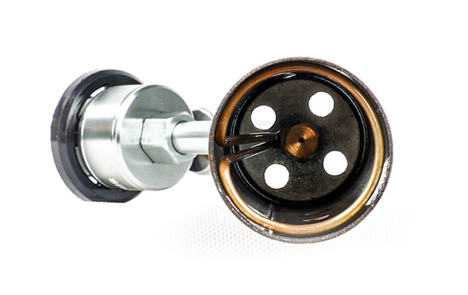 รุ่นนี้ออกแบบมาให้ไม่มีระบบแมกนีโต (ใช้ไฟแช็กจุด) เพื่อตัดปัญหาจุกจิกเรื่องตัวจุดเสียเมื่อใช้งานหนักหรือเปียกชื้น โครงสร้างผลิตจาก Stainless Steel ทั้งชิ้น ทนความร้อนและแข็งแรงทนทาน พร้อมติดตั้งระบบ “ท่อความร้อน (Heating Pipe)” ภายในหัวพ่น ช่วยอุ่นแก๊สให้เผาไหม้สมบูรณ์ ทำให้ได้เปลวไฟที่นิ่งเสถียร ไม่วูบวาบ แม้ต้องขยับหรือเอียงกระป๋องไปมา (หลังจากวอร์มหัวพ่นแล้ว)
