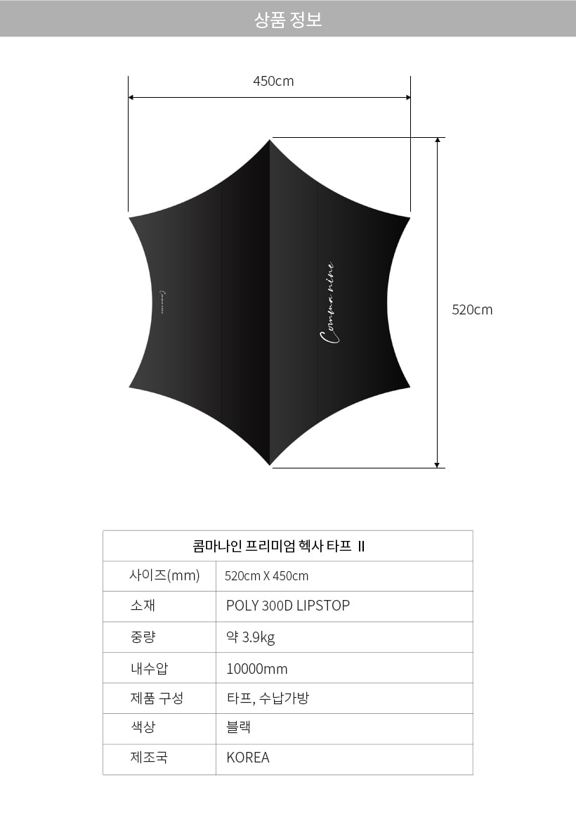 รายละเอียด : ทาร์ปทรง Hexa จาก Comma nine ผลิตจากผ้า Poly 300D Ripstop ความหนาแน่นสูง มีความต้านทานต่อแรงดึงที่ดีเยี่ยม ทำให้ทนทานต่อการฉีกขาด และยังเคลือบสารป้องกันสะเก็ดไฟ สามารถใช้งานได้ในสภาพอากาศที่ฝนตกหนัก ด้านในยังเคลือบสารกัน UV ที่ช่วยลดอุณหภูมิได้ในช่วงอากาศร้อน และขนาดที่กว้างถึง 5.2 x 4.5 m จึงสามารถใช้งานได้หลายคน