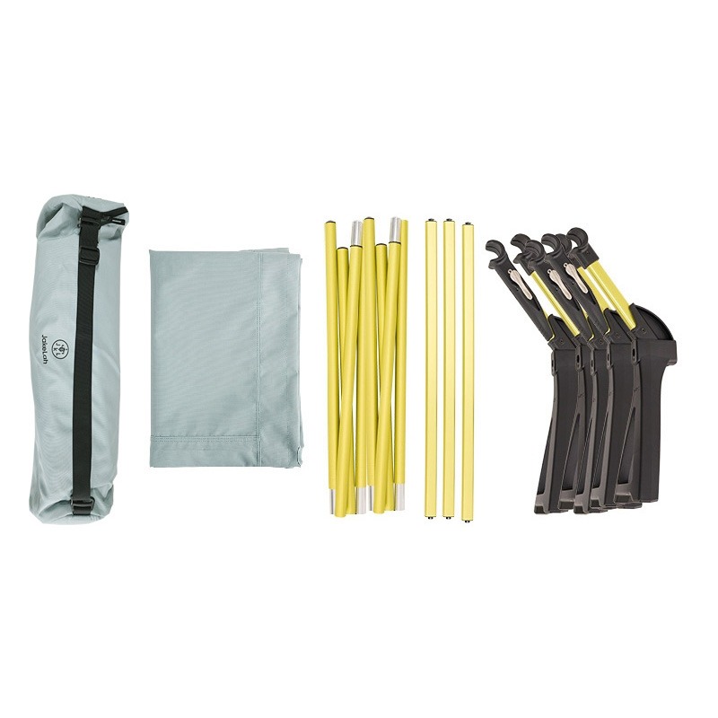 J.cot ยังมีความสามารถในการเชื่อมต่อหลายเตียงเข้าด้วยกันด้วยสายรัดด้านล่าง ทำให้มั่นคงไม่แยกจากกัน วัสดุของเตียงทำจากโพลีเอสเตอร์ 900D w/r PU ที่แข็งแรง ทนทาน และกันน้ำ ไม่ยืดตัวแม้ใช้งานเป็นเวลานาน เสา DAC คุณภาพสูง DA17 และ Th72m ช่วยลดน้ำหนักและเพิ่มความทนทาน นอกจากนี้ ด้านล่างของเตียงยังมีวงแหวน TPU 8 วงสำหรับการขยายอุปกรณ์เสริมในอนาคต