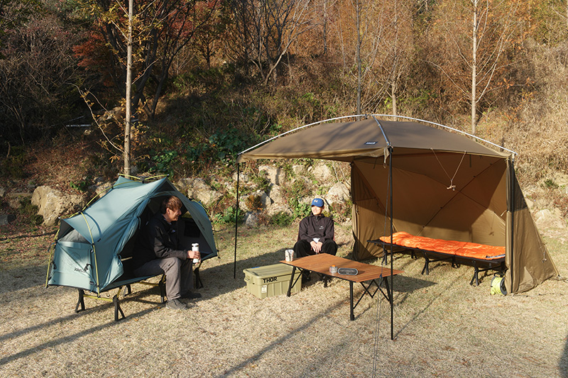 J.cot ยังมีความสามารถในการเชื่อมต่อหลายเตียงเข้าด้วยกันด้วยสายรัดด้านล่าง ทำให้มั่นคงไม่แยกจากกัน วัสดุของเตียงทำจากโพลีเอสเตอร์ 900D w/r PU ที่แข็งแรง ทนทาน และกันน้ำ ไม่ยืดตัวแม้ใช้งานเป็นเวลานาน เสา DAC คุณภาพสูง Th72m ช่วยลดน้ำหนักและเพิ่มความทนทาน นอกจากนี้ ด้านล่างของเตียงยังมีวงแหวน TPU 8 วงสำหรับการขยายอุปกรณ์เสริมในอนาคต