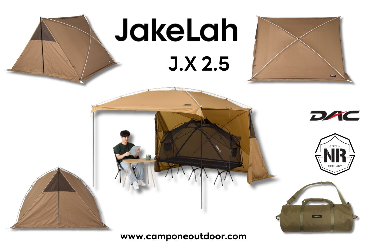 Jx 2.5 ใช้เสาเป็นรูป X และยกผ้าด้วยดุมที่พัฒนาโดย DAC เพื่อขยายพื้นที่ภายในเต็นท์ ด้วยการออกแบบนี้ Jx 2.5 จะมีพื้นที่ภายในที่ใหญ่กว่ามากในบรรดาเต็นท์ประเภท A frame · ใช้ ผ้า 75d PR/pu/ซิลิโคน ซึ่งมีคุณสมบัติกันน้ำและป้องกันการเปรอะเปื้อนได้ดีเยี่ยม โดยทนแรงดันน้ำได้ 2,000 มม. และมีความทนทานสูง
