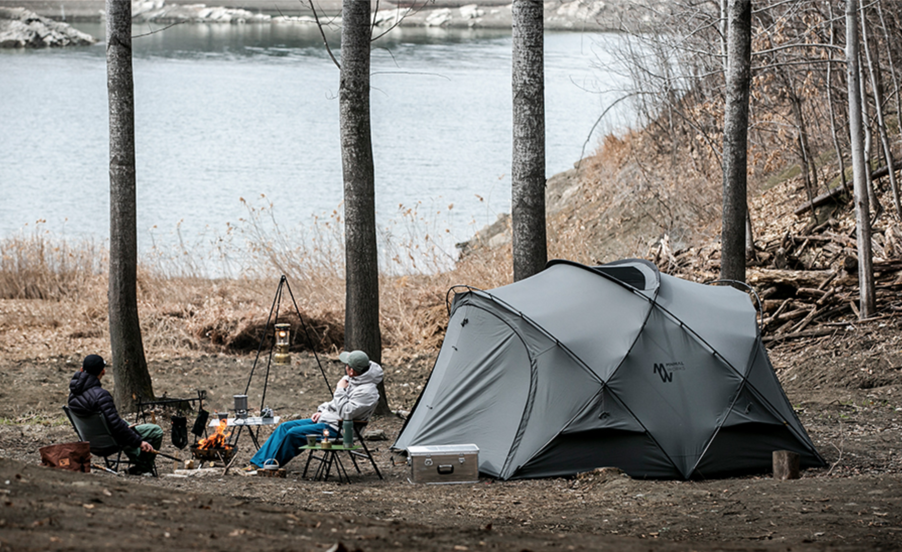 ข้อได้เปรียบของวัสดุ T/C ของ Shelter GH คือให้สภาพแวดล้อมในร่มที่สะดวกสบายและมีการควบแน่นเพียงเล็กน้อย และโครงสร้างสมมาตรของประตูคู่ช่วยให้เข้าและออกได้ฟรี