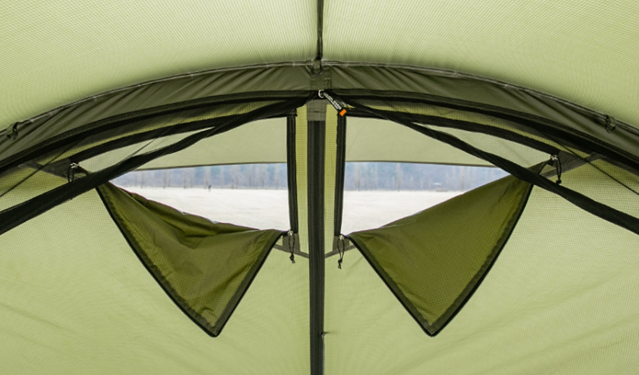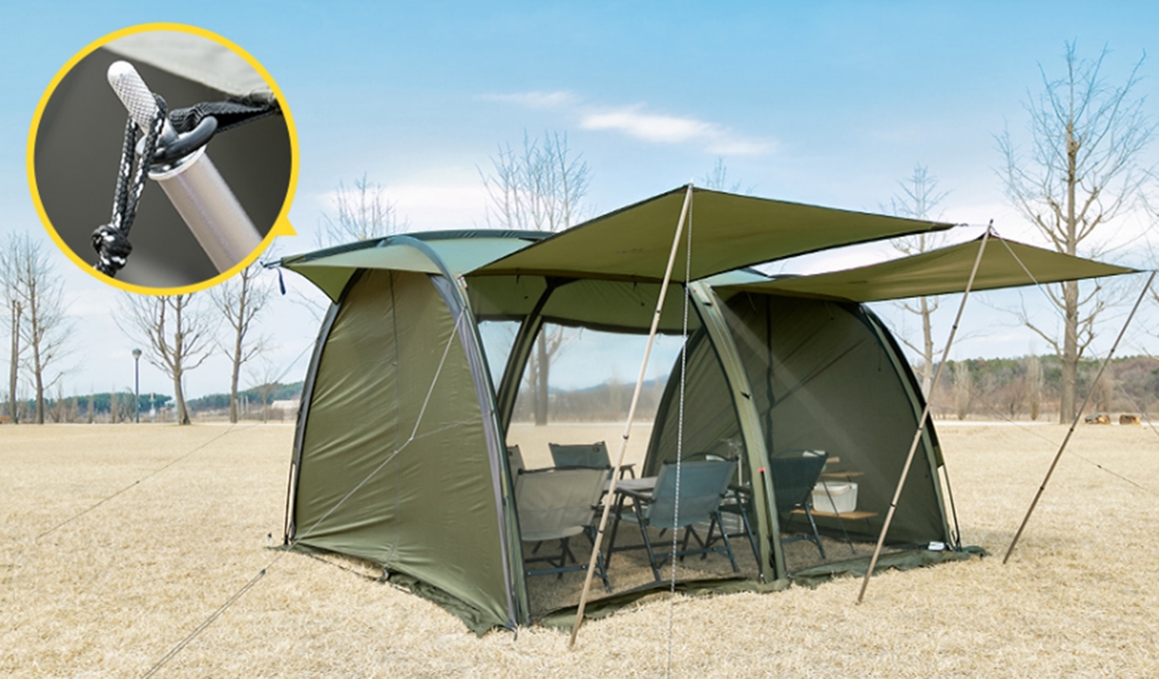 ตัว Shelter มาพร้อมมุงตาข่ายรอบตัวมาให้ Shelter สามารถกางออกได้หลายรูปแบบ เพื่อเพิ่มพื้นที่การใช้งาน สามารถใส่ Inner (จำหน่ายแยก) หรือ Ground sheet ได้
