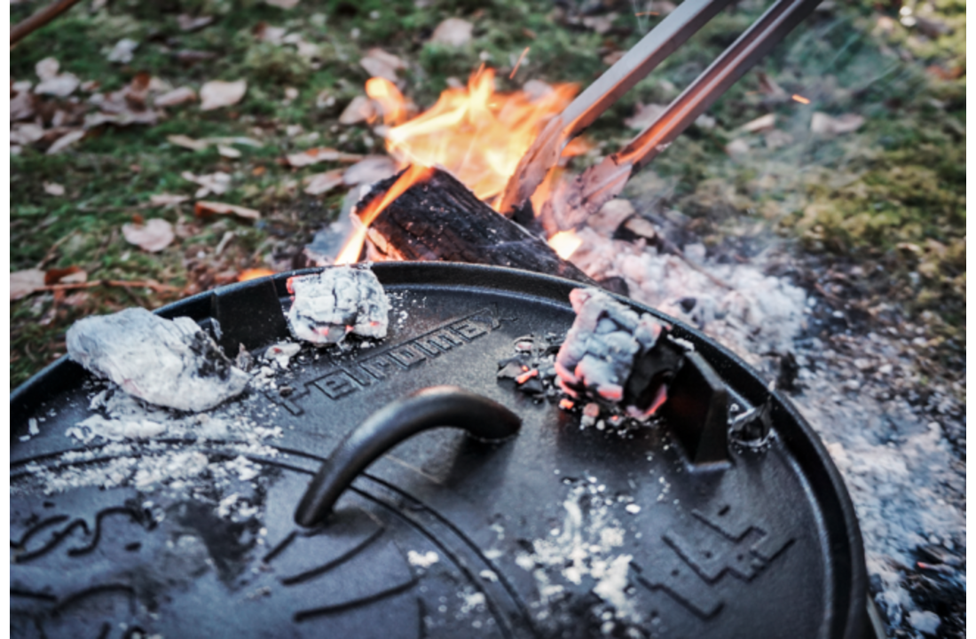 Dutch oven หม้อทำอาหารเหล็กหล่อ ft4.5 ขนาดสำหรับ จำนวนคน 2-5 คน มีขาตั้ง 3 ขา ความจุสูงสุดของหม้อ 3.5 ลิตร และฝา 1 ลิตร เหมาะสำหรับการทำอาหารบนกองไฟ ปรุงอาหารได้ทั้งประเภทผักและเนื้อสัตว์ ด้วยคุณสมบัติพิเศษน้ำภายในอาหารจะไม่ระเหยออกไปมากเหมือนหม้อทั่วไปทำให้อาหารมีความชุ่มชื้นกรอบนอกนุ่มใน ฝาปิดออกแบบมาเป็นพิเศษที่สามารถใช้เป็นกระทะหรือแผ่นปิ้งย่าง