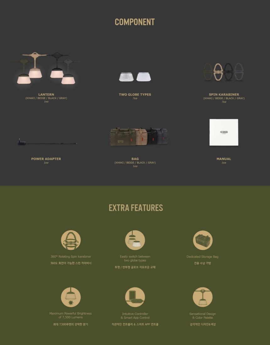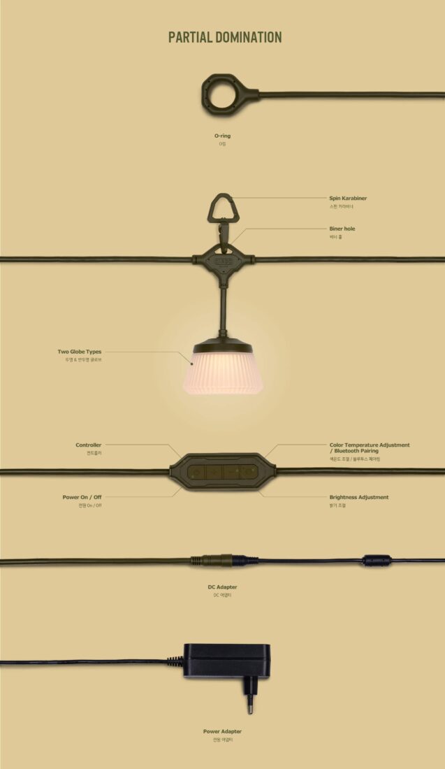 ดีไซน์อเนกประสงค์และการติดตั้งที่อิสระ ออกแบบมาเพื่อความสะดวกสูงสุดด้วยระบบตะขอคาราบิเนอร์แบบหมุนได้ 360 องศา (Spin Karabiner) เอกสิทธิ์เฉพาะ ทำให้ติดตั้งง่าย สายไฟไม่พันกัน และจัดมุมแสงได้ตามต้องการ มาพร้อมโคม 2 แบบในชุด คือแบบใสและแบบขุ่น ให้คุณเลือกเปลี่ยนเพื่อกระจายแสงในรูปแบบที่ชอบได้