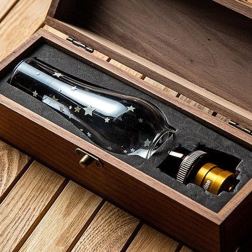 ตะแตียงแก๊สแบบเปลวเทียน โป๊ะทำจากแก้วคุณภาพสูง เทคนิคการผลิตแบบพิเศษทนต่อการเปลี่ยนแปลงของสภาพอุณหภูมิ มาพร้อมกล่องที่ทำจากไม้วอลนัทให้ความรู้สึกคลาสสิก