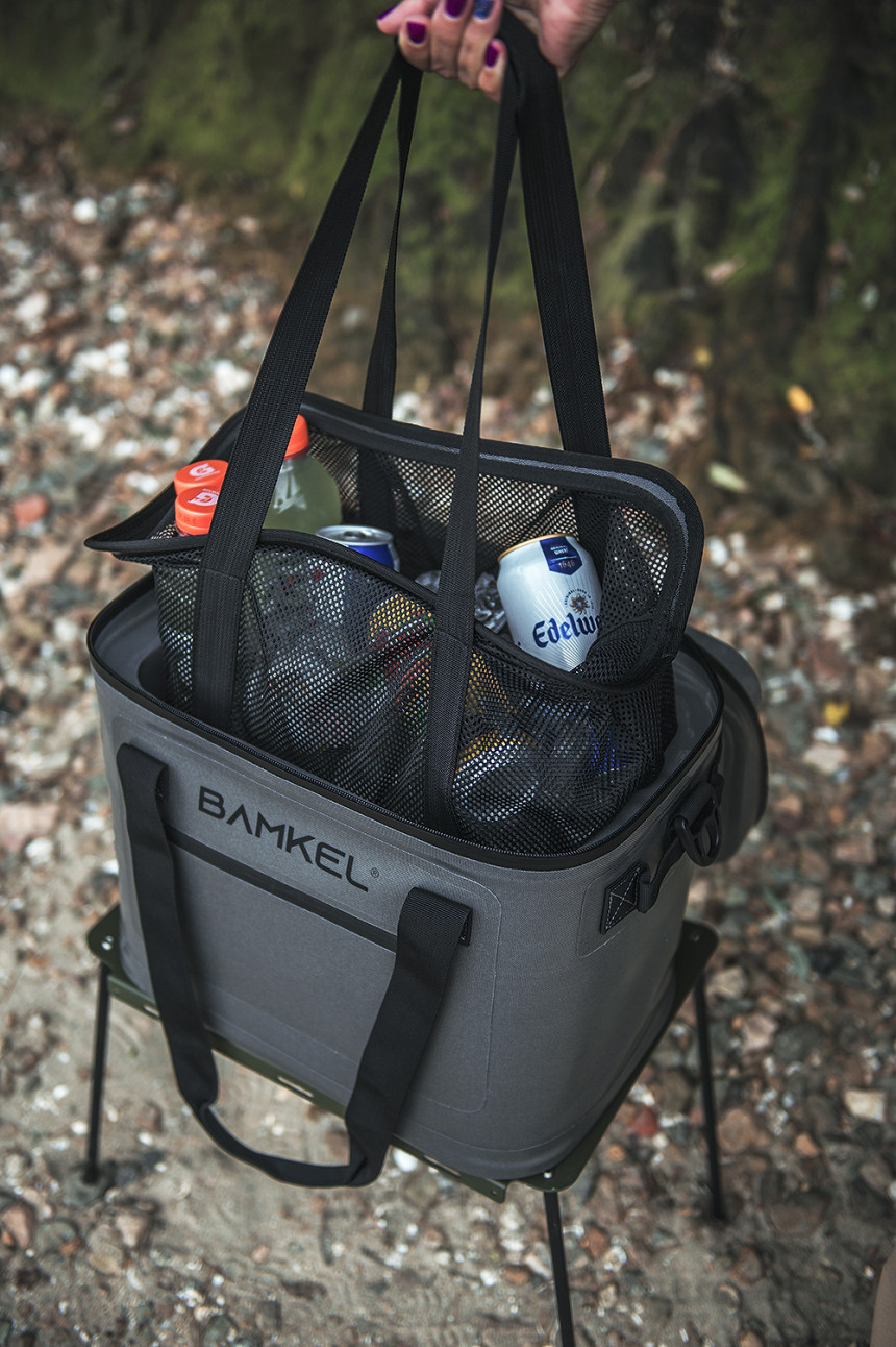 รายละเอียด : ตั้งแคมป์ ตกปลา ปิคนิค เดินป่า พกพาสะดวกกับกิจกรรมกลางแจ้ง ทุกประเภท กระเป๋าเก็บความเย็นแบบ Soft Cooler จาก Bamkel คุณภาพระดับพรีเมียม โฟมด้านใน NBR ความหนาแน่นสูง หนา 20mm ซึ่งเป็นฉนวนกันความร้อนได้ดีเยี่ยม นอกจากนี้ยังมี กระเป๋าตาข่าย Tote อยู่ด้านใน ช่วยให้ง่ายต่อการเอาน้ำแข็งที่ละลายแล้วออก วัสดุด้านน้องใช้ผ้าคุณภาพสูง เคลือบลามิเนต 840D TPU ทำให้ทนทานต่อรังสี UV และไม่เสียหายง่ายจากการเสียดทานภายนอก เหมาะกับการใช้งานกลางแจ้ง กันน้ำและทำความสะอาดได้ง่าย