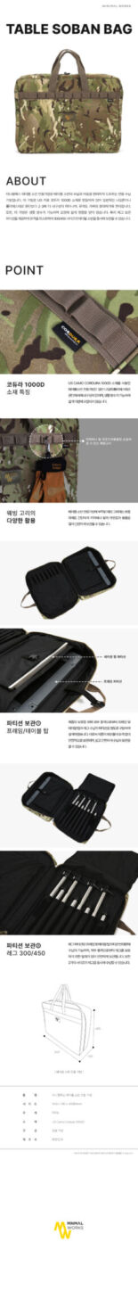 รายละเอียด : Minimal Works Table Soban Bag เป็นกระเป๋าเก็บของที่ช่วยให้คุณจัดเก็บและเคลื่อนย้ายโต๊ะได้อย่างสะดวก กระเป๋าใบนี้ทำจากวัสดุ US Camo Cordura 1000D ซึ่งมีความทนทานมากกว่า ผ้าไนลอนหรือโพลีเอสเตอร์ทั่วไปถึง 2-3 เท่า และมีน้ำหนักเบาทำให้พกพาได้สะดวก นอกจากนี้กระเป๋าใบนี้ยังกันน้ำ มีฉากกั้นสำหรับจัดเก็บขาเพื่อลดระยะห่าง ทำให้สามารถจัดเก็บโต๊ะและถาดขนาด 300/450 ได้พร้อมกัน