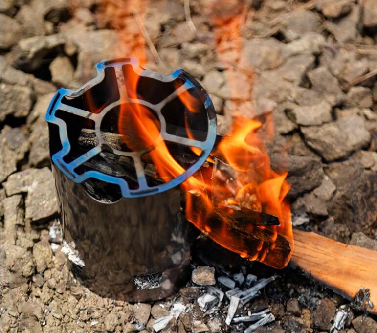 เตาฟืนประสิทธิภาพสูง (Fast and Efficient): เตาไม้ไทเทเนียมออกแบบให้มีช่องระบายอากาศที่ดีเยี่ยม ทำให้อากาศไหลเวียนได้ดี ไฟลุกไหม้ได้แรง ช่วยให้การต้มน้ำหรือทำอาหารมื้อเรียบง่ายเสร็จอย่างรวดเร็ว สามารถใช้ฟืนหรือกิ่งไม้ตามธรรมชาติเป็นเชื้อเพลิงได้เลย