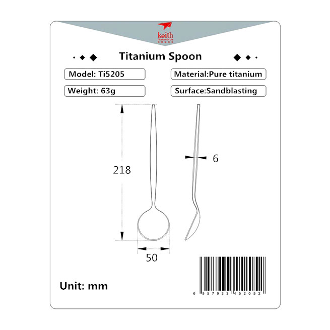 รายละเอียด : ช้อนตักแกงไทเทเนียม แบบด้ามยาว Keith Ti5205 ผลิตจากไทเทเนียม ด้วยความยาว 22 cm ทำให้สามารถใช้คนในหม้อได้สะดวก ทั้งยังออกแบบให้มีความโค้งเพื่อให้สะดวกในการตักน้ำแกง น้ำหนักเบาเพียง 63 g