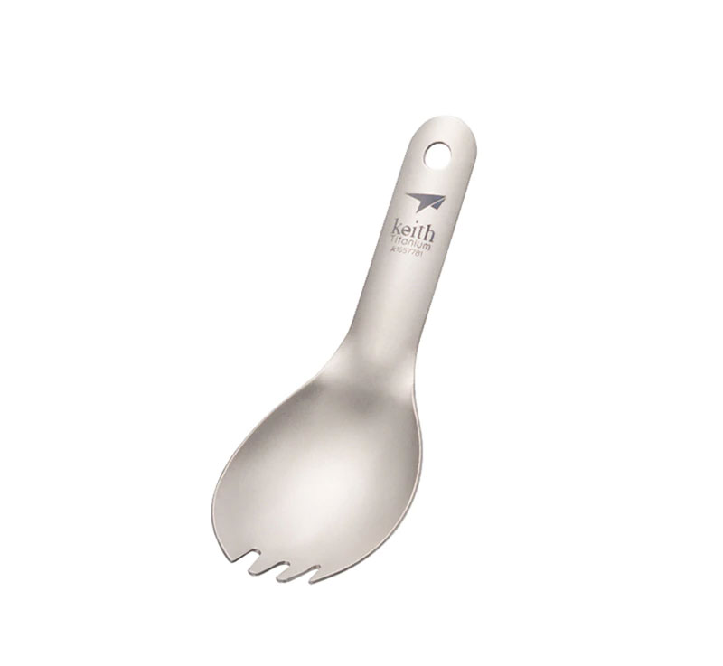 รายละเอียด : ช้อนส้อม Spork แบบสั้น ผลิตจากไทเทเนียม Keith รหัส Ti5312 เป็นช้อนอเนกประสงค์ที่สามารถใช้เป็นช้อน ส้อม ได้ในตัวเดียวกัน ทั้งยังออกแบบให้มีความโค้งเพื่อให้สะดวกในการตักน้ำแกง น้ำหนักเบาเพียง 13.6 g