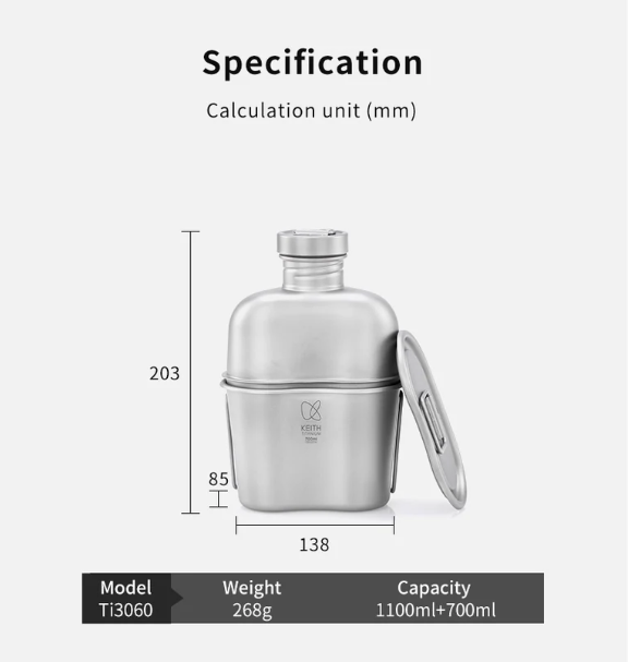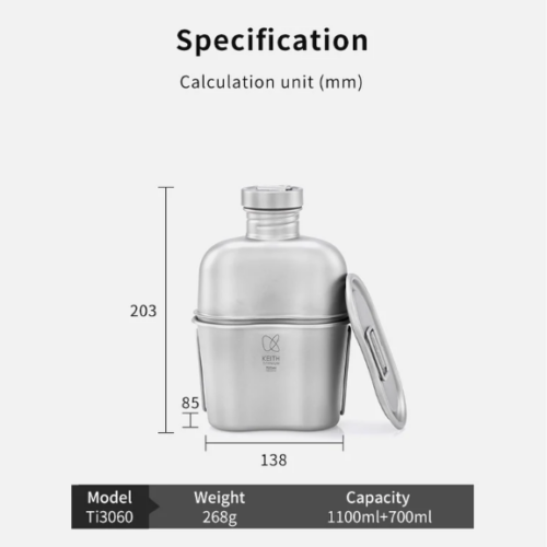 รายละเอียด : ชุดหม้อสนามไทเทเนียม Keith ผลิตจากไทเทเนียมบริสุทธิ์ 99.96% จึงทำให้มีน้ำหนักเบาแต่มีความทนทานสูง ผิวพ่นทรายให้ความหรูหราของไททาเนียมได้เป็นอย่างดี ชุดนี้แยกเป็น 2 ชิ้นคือชุดขวดน้ำขนาด 1.1 ลิตร กับชุดหม้อขนาด 700ml ที่นำมาประกบเข้าที่ฐานขวดเพื่อลดพื้นที่การจัดเก็บได้ นอกจากนั้นยังแถมซองใส่ลายพรางให้อีกด้วย ชุดนี้สามารถใส่ได้ทั้งน้ำร้อนและน้ำเย็น รวมทั้งยังเหมาะสำหรับการประกอบอาหาร ทำให้การประกอบอาหารนอกสถานที่เป็นเรื่องง่าย