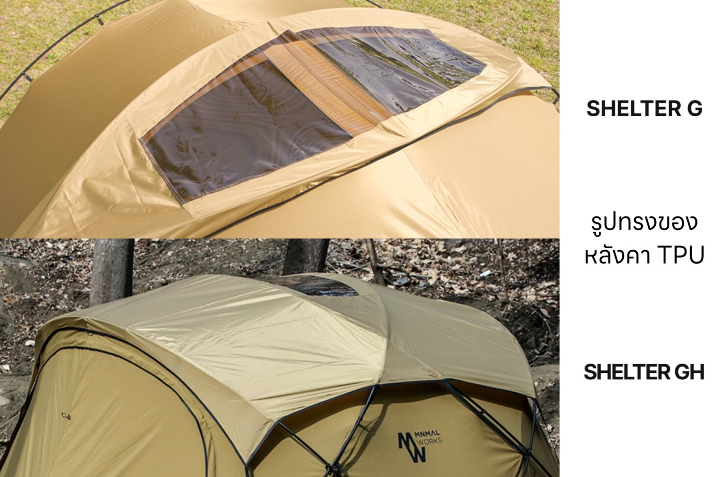 ทรงของหลังคา TPU ที่แตกต่างกันอย่างชัดเจน Shelter G จะปิดแค่ส่วนกลางที่มีช่องรับแสงเท่านั้น ส่วน Shelter GH มีปิดทั่วทั้งด้านบนของ Shelter เลยครับ