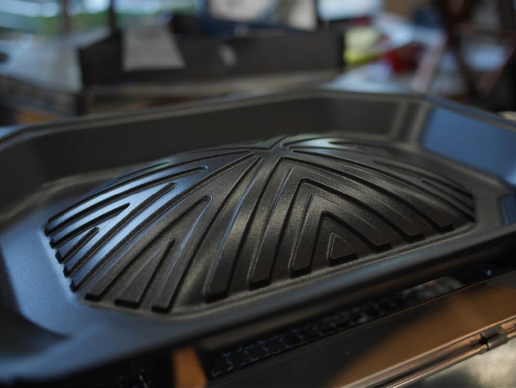 ร่องสำหรับน้ำซุป/น้ำมัน: ที่ขอบกระทะมีร่องออกแบบมาโดยเฉพาะ ทำให้การเทน้ำมันส่วนเกินออกเป็นเรื่องง่าย หรือจะ ประยุกต์ใช้ใส่ซุปอร่อยๆ รอบๆเนื้อย่าง ก็ให้ฟีลลิ่งเหมือนกินหมูกระทะได้เป็นอย่างดี!
