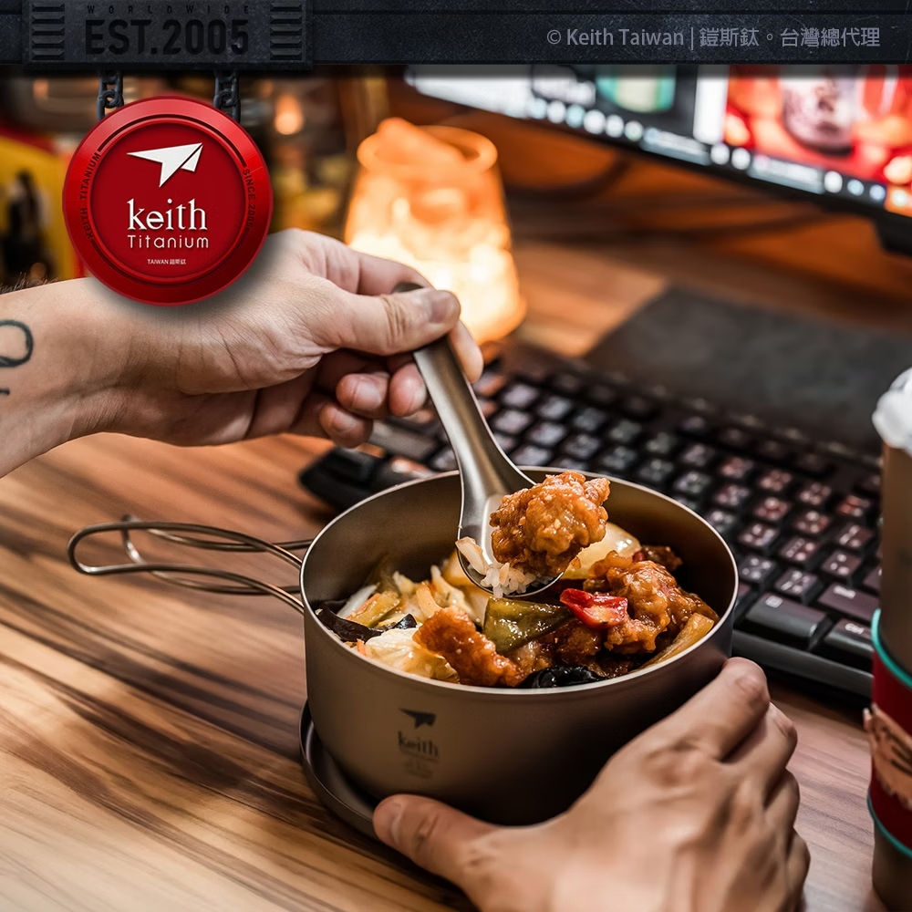 ชุดเครื่องครัวหม้อกระทะไทเทเนียม จาก Keith ประกอบด้วยหม้อขนาด 1.25 ลิตรและกระทะขนาด 800 มิลลิลิตร ผลิตจากไทเทเนียมบริสุทธิ์ 99.9% ที่ผ่านการรับรองความปลอดภัยไร้สารพิษ โดดเด่นด้วยน้ำหนักเบาเพียง 228 กรัมสำหรับทั้งชุด ด้วยคุณสมบัติพิเศษของไทเทเนียม ชุดครัวนี้สามารถทนความร้อนได้สูงถึง 1,600 องศาเซลเซียสโดยไม่เสียรูปทรง และยังคงความแข็งแรงแม้ในอุณหภูมิต่ำถึง -253 องศาเซลเซียส โดยไม่เกิดความเปราะหรือแตกร้าวเหมือนวัสดุทั่วไป นอกจากนี้ยังทนทานต่อการเกิดสนิมและการกัดกร่อน ตกแต่งด้วยพื้นผิวขัดทรายที่ให้ความรู้สึกหรูหราสมกับเป็นผลิตภัณฑ์ระดับพรีเมียม ด้วยขนาดกะทัดรัดและน้ำหนักที่เบาเป็นพิเศษ ทำให้ชุดครัวนี้กลายเป็นอุปกรณ์ที่ขาดไม่ได้สำหรับการเดินทาง การตั้งแคมป์ และกิจกรรมกลางแจ้งทุกรูปแบบ
