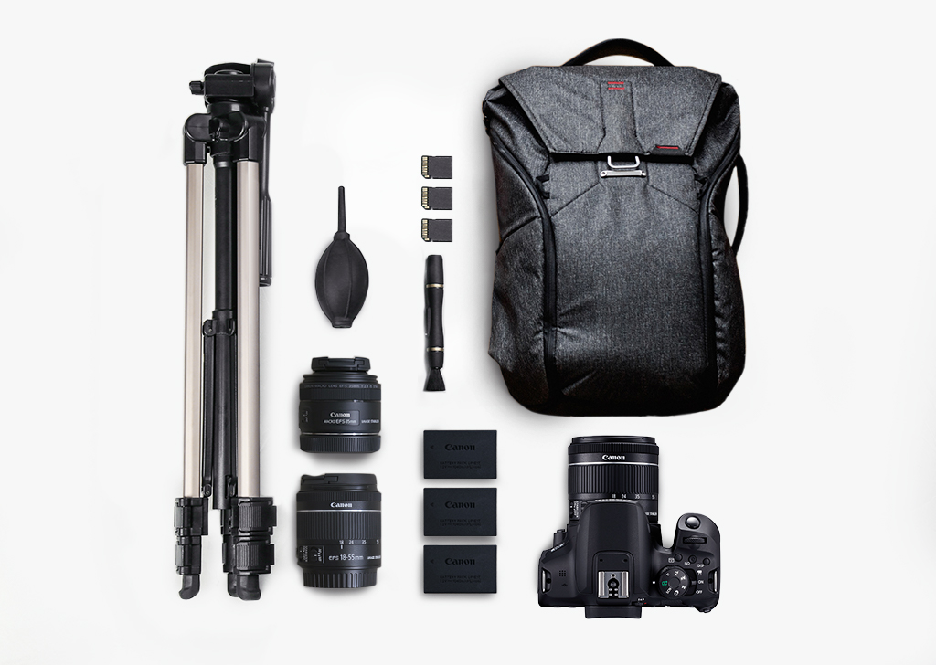 คุณจะต้องมีอุปกรณ์ในการถ่ายวิดีโอท่องเที่ยวแคมป์ปิ้งของคุณ อุปกรณ์พื้นฐาน ได้แก่ กล้อง เลนส์ ไมโครโฟน และขาตั้งกล้อง อาจมีอุปกรณ์เพิ่มเติม เช่น โดรนหรือกล้องติดตัว