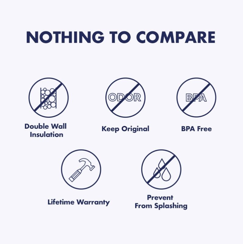 เก็บอุณหภูมิยอดเยี่ยมด้วยผนังสูญญากาศ 2 ชั้น เทคโนโลยี Double Wall Vacuum Insulation ช่วยรักษาอุณหภูมิเครื่องดื่มได้อย่างดีเยี่ยม สามารถเก็บความเย็นได้ยาวนานข้ามวัน และเก็บความร้อนได้นานหลายชั่วโมง โดยไม่มีไอน้ำเกาะที่ด้านนอกแก้ว ให้โต๊ะทำงานหรือรถของคุณแห้งสนิท