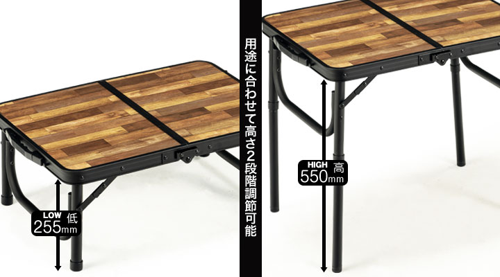 รายละเอียด : โต๊ะอลูมิเนียมที่น้ำหนักเบาและทนทาน สามารถใช้งานได้ 2 ระดับ คือ HIGH และ LOW ด้านบนเป็นลายไม้สวยงาม พับเก็บได้ มีหูหิ้วพกพาสะดวก